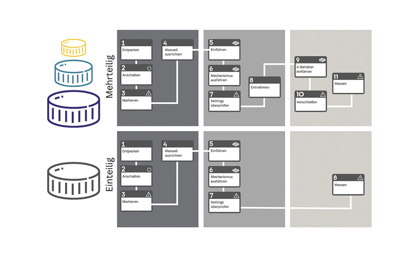 Der modulare Aufbau von Geräten beispielsweise bietet für Hersteller viele Vorteile, darunter eine schnelle Entwicklung sowie niedrigere Kosten. Ist das Medizinprodukt jedoch zu viel- bzw. kleinteilig, leidet die Usability. Um hier Prioritäten setzen zu können, führte Plexus bei einem Kundenprojekt eine User Journey Map für zwei unterschiedliche Produktdesigns durch (Bild 4). Die Interaktionen der Anwender mit jedem Archetypen ließen sich Schritt für Schritt nachverfolgen. Das Ergebnis: Zwar war das einteilige Gerät mit hohen Kosten verbunden und erhöhte die Komplexität, in Sachen Usability konnten Endanwender jedoch viele sicherheitsanfällige Zwischenschritte überspringen.