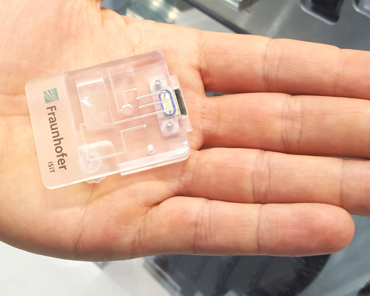 Ein Beispiel für ein solches System präsentierte in Düsseldorf das Fraunhofer-Institut für Siliziumtechnologie ISIT. Der Campton Reader 100 erleichtert die Messung von Biomarkern. Deren Nachweis basiert derzeit auf immunologischen Assays (»enzyme-linked immunosorbent assay« [ELISA] und »recombinant immunoblot assay« [RIA]). Diese Tests erfordern in der Regel Labore, geschultes Personal und sind zeitaufwendig; tragbare Diagnostikgeräte liefern deutlich schneller Ergebnisse.