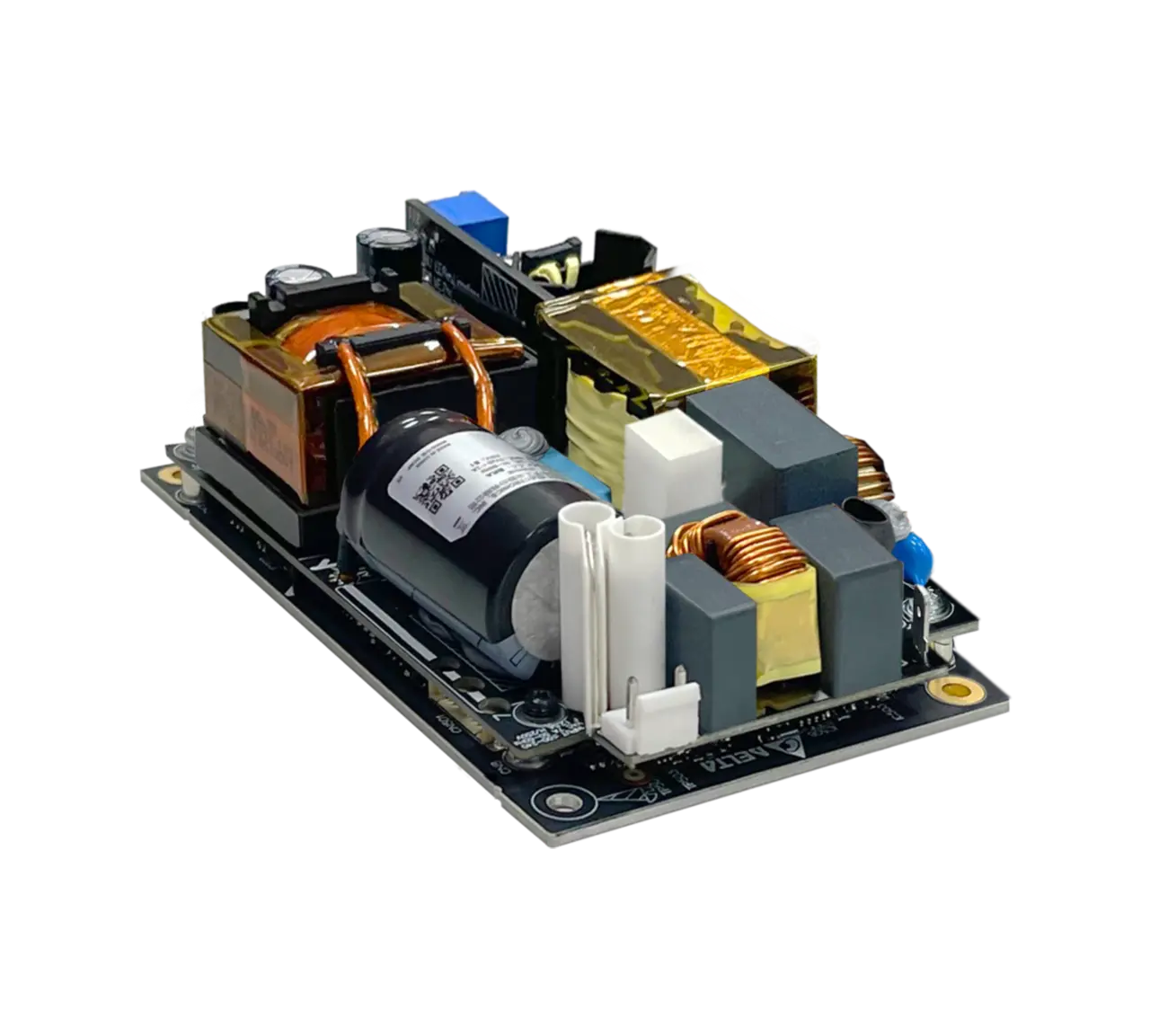 Ein aktuelles Beispiel für die Umsetzung dieser Anforderungen ist das Modell MEP-600A24J BRA aus der MEP-Serie von Delta Electronics. Dieses Open-Frame-Netzteil mit einer Grundfläche von 3" × 5" (7,62 cm × 12,7 cm) liefert bis zu 600 Watt bei aktiver Lüfterkühlung oder 450 Watt bei natürlicher Konvektion. Es basiert auf Galliumnitrid-Halbleitern, die höhere Schaltfrequenzen und geringere Verluste ermöglichen, was zu einer Leistungsdichte von bis zu 1,6 W/cm³ führt. Die GaN-Technologie verbessert zudem den Wirkungsgrad und reduziert die thermische Belastung, was besonders bei hohen Umgebungstemperaturen oder beengten Einbauverhältnissen Vorteile bietet. Das Netzteil deckt einen Betriebstemperaturbereich bis 80 °C ab und bietet Funktionen wie einen 5-V/2-A-Standby-Ausgang, Remote-Ein/Aus-Steuerung und integrierte Stromverteilung, die den Schaltungsaufwand im Gesamtsystem reduzieren.