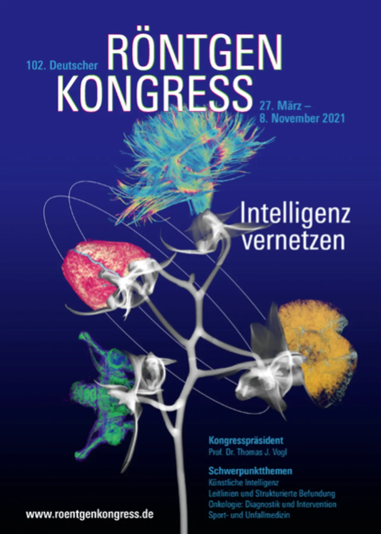 Neun Monate lange wird das Motto »Intelligenz vernetzen« die radiologische Community in Deutschland begleiten. »Ich möchte Menschen mit radiologischen Expertisen und Erfahrungen mit AkteurInnen aus Berufs- und Gesundheitspolitik und mit Industriepartner:innen zusammenbringen«, sagt Vogl. Darüber hinaus ziele das visuelle Grundmotiv des 102. Deutschen Röntgenkongresses noch auf eine weitere Analogie ab: »Wenn vegetative Intelligenz bedeutet, auf Veränderungen der Umwelt adäquat reagieren zu können, dann lässt sich diese Fähigkeit auch sehr gut auf die Radiologie übertragen. Und Resilienz gehört sicherlich zu den Eigenschaften, die wir alle in der Covid-19-Pandemie unter Beweis stellen mussten«, so Vogl. Die Idee der Vernetzung ziehe sich durch den gesamten Kongress und zeige sich gleich am ersten Tag, also am 27. März 2021.