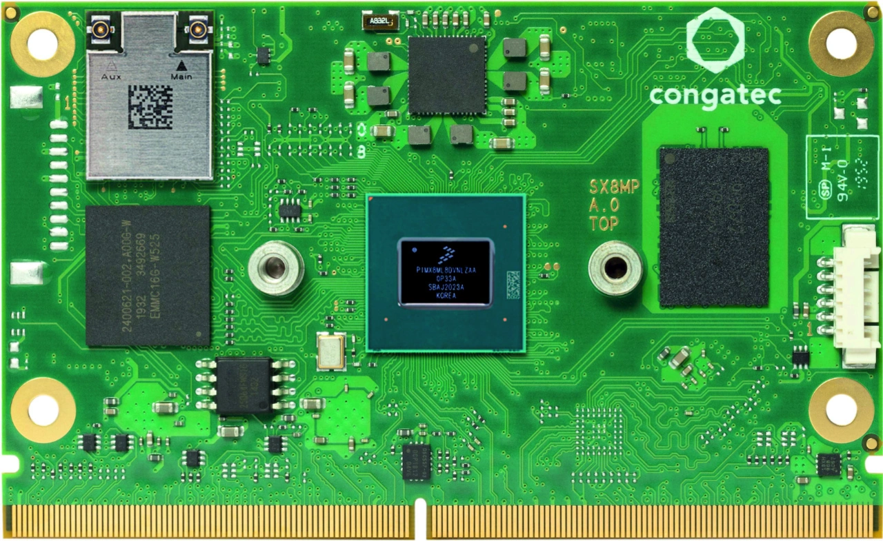Um den Einsatz des NXP-Prozessors zu beschleunigen, hat wiederum Congatec ein Starterset konzipiert und auf den Markt gebracht, das Edge-Anwendungen schnell und sicher das KI-Auge öffnet. Herzstück des Embedded-Vision-Baukastens ist ein kreditkartengroßes SMARC 2.1 Computer-on-Module (COM) mit dem Prozessor