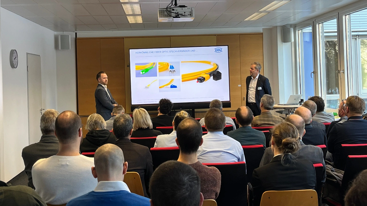 Rudolf Weidenspointner und Mathias Wuttke von ODU räumten in ihrem Vortrag mit gängigen Vorurteilen zum Einsatz von Glasfaser-Verbindungen in der Medizintechnik auf. Sie zeigten, wie der Steckverbinderhersteller aus Mühldorf die Vorteile des hochgeschwindigkeitsfähigen Materials nutzen und Nachteile wie kurze Lebensdauer und Pflegebedürftigkeit mit schlauer Technologie wie »Expaned Beam« ausmerzen kann. Fiber Optic kann seine Performance so auch in der Medizintechnik zeigen.