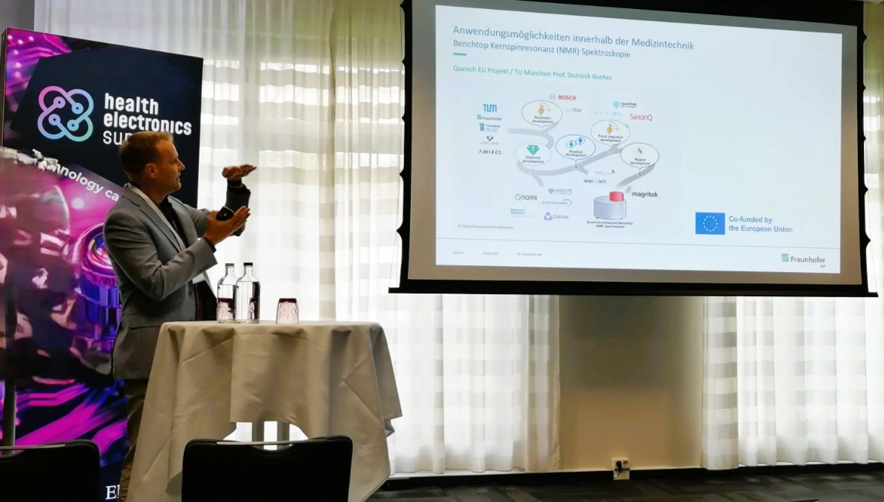 Und wie kann die Quantentechnik da helfen? »Neuartige Einblicke für die Medizintechnik mit Quantensensorik« hieß der Vortrag, in dem Dr. Michael Stoebe vom Fraunhofer IAF zeigte, mit welchen Wirkmechanismen und im Falle seines Instituts diamantbasierten Quantentechnologien die Messgrößen in der Medizintechnik immer sensitiver werden. Die nicht-invasive Erfassung von Nervensignalen an der Kopfhaut könnte langfristig zum Beispiel risikoreiche, da invasive, Neuro-Implantate überflüssig machen.