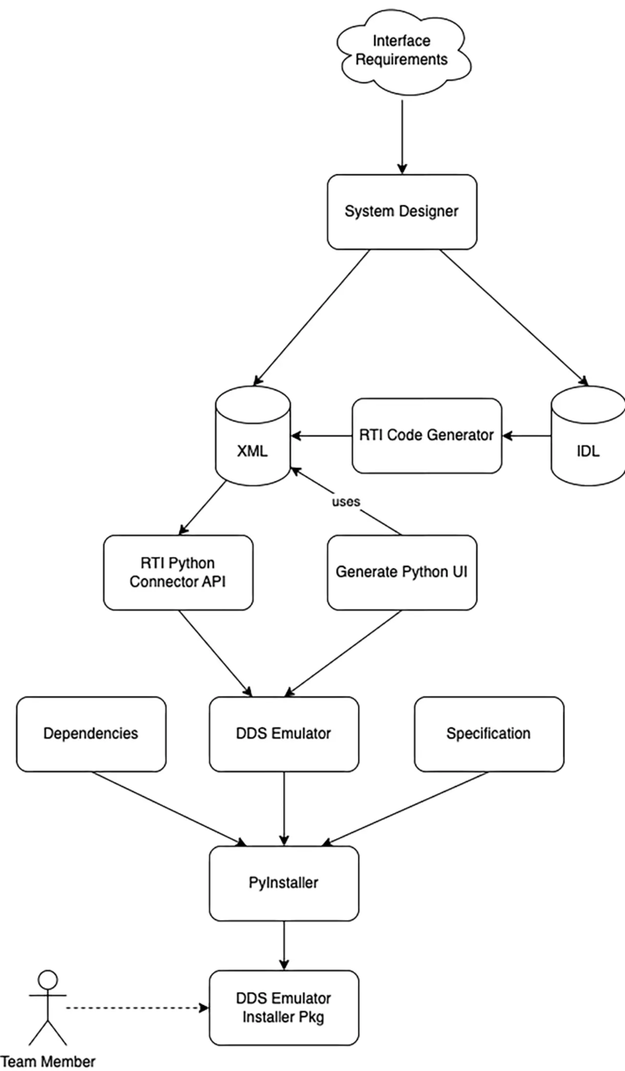 Die Einrichtung und Konfiguration des DDS-Emulators erwies sich als zeitaufwändig. Darum kann der PyInstaller zum Einsatz, um die Phyton-Skripte, Pip-Bibliotheken und Connext in eine leichtgewichtige, ausführbare Datei zu packen, die ohne weitere Konfiguration mit der Anwendung kommunizieren kann. Ein Build-Skript konvertierte die neuesten IDL-Dateien in XML-Dateien, bündelte sie mit dem DDS-Emulator, fügte sie der Pipeline hinzu und stellte sie der zu testenden Anwendung zur Verfügung.