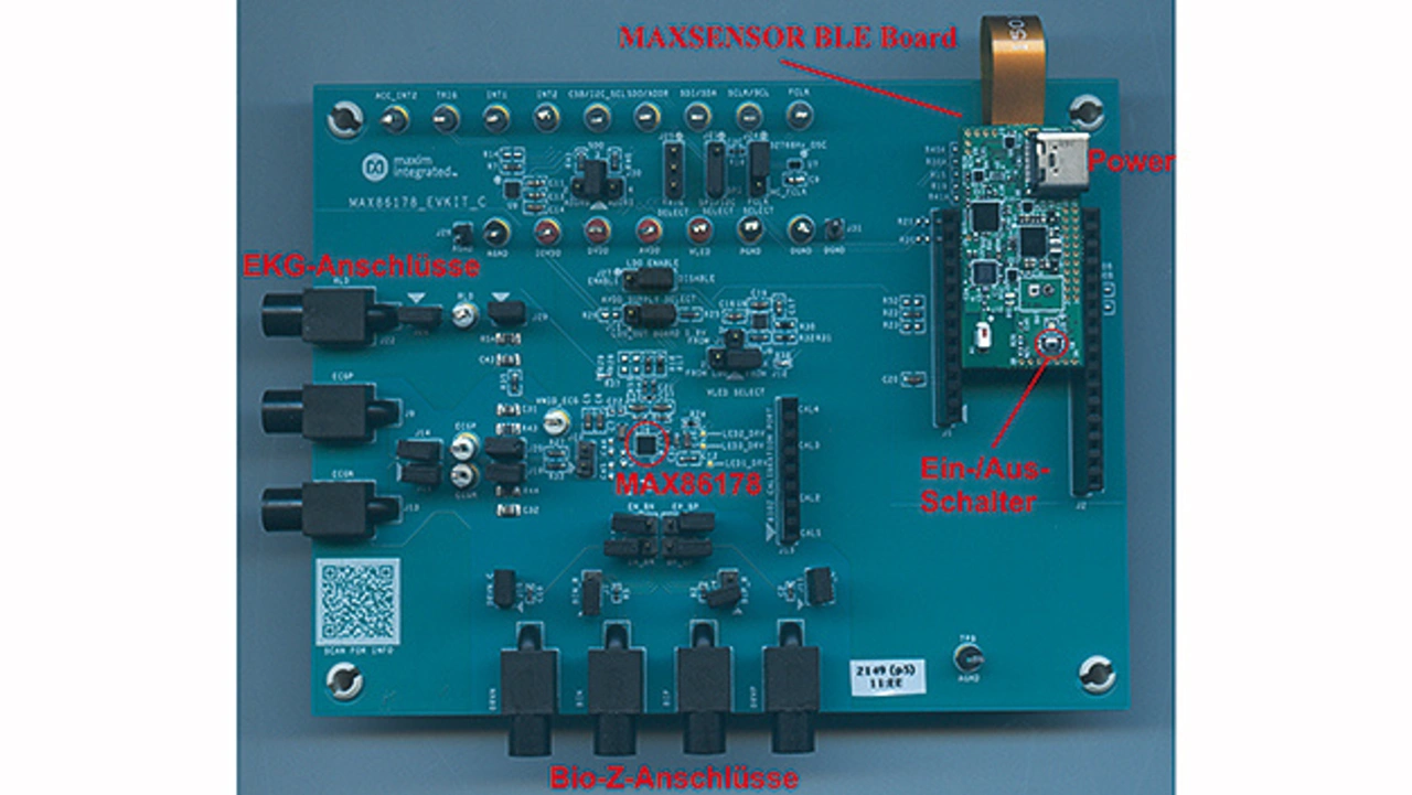 Das zum MAX86178 passende Entwicklungskit (MAX86178EVKIT) hatte zum Zeitpunkt des Tests noch den Prototypstatus, was an der Dokumentation und dem Support auch zu erkennen war. Die Dokumentation, die ein Entwickler erst nach dem erfolgreichen Abschluss eines NDAs (siehe Teil 1 [7]) erhält, ist sehr rudimentär und enthält zudem zahlreiche Fehler, was etwas erstaunlich ist, weil der MAX86178 bereits seit über einem Jahr auf dem Markt ist.