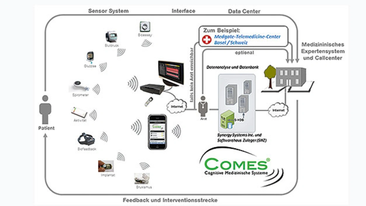 Ein integrierter Bildschirm zeigt die gemessenen Werte an und sendet diese per Mobilfunk an ein intelligentes Assistenzsystem in einem medizinisches Expertenzentrum. Arzt und Patient haben über die Telemedizin-Plattform Comes jederzeit Zugriff auf die Daten und ihren aktuellen Zustand – liegen die Werte in einem kritischen Bereich wird der behandelnde Arzt umgehend alarmiert. Ist er nicht verfügbar, nehmen Ärzte des Expertenzentrums mit dem Patienten Kontakt auf oder setzen einen Notruf ab. Das All-in-one-Medizingerät ist mobil und kann für Ausflüge vom Handlauf genommen werden, um die Vitalwerte außer Haus zu überprüfen. Es ist klein, stabil und passt in die Jackentasche.