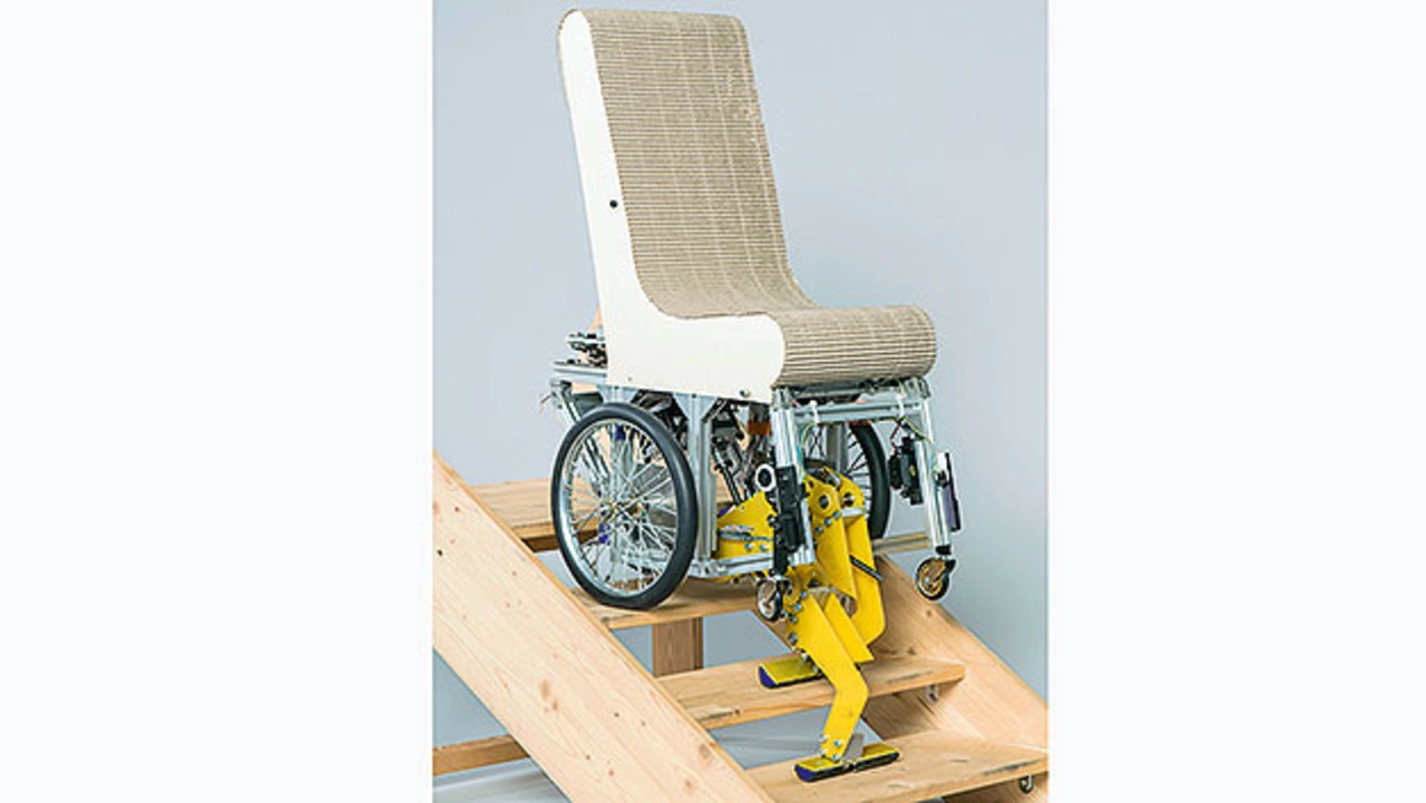 Erkennen die Ultraschallsensoren des Fahrwerks eine Treppe, wechselt der Rollstuhl in den Treppen-Modus: Zwei Hilfsräder fahren aus dem Fahrwerk heraus und das Fahrzeug fährt rückwärts an die Treppe heran. Anschließend fahren zwei ausklappbare Beine heraus, die sich ähnlich den menschlichen Beinen aus Ober- und Unterschenkel zusammensetzen. Mit ihren Elektromotoren schieben die Beine den Rollstuhl auf die nächsthöhere Stufe, bevor sie sich nacheinander ebenfalls neu positionieren. So erklimmt der Rollstuhl Stufe für Stufe. Diese Funktionsweise klappt auch beim Einstieg in ein Auto – der Sitz wird mit der darauf sitzenden Person als Fahrersitz ins Auto geschwenkt. Das Rollstuhlfahrwerk fährt danach automatisch zum Heck und verlädt sich selbstständig im Kofferraum. So kann eine beeinträchtige Person alle Wege des Alltags, vom Aufstehen am Morgen bis zum Zubettgehen am Abend, auf dem gleichen Sitz und ohne fremde Hilfe bewerkstelligen. Auch zwischendrin aufstehen ist möglich, der Rollstuhl fährt in diesem Fall automatisch in den Parkmodus, beispielsweise an seine Ladestation. Mit hoher Flexibilität bietet das elektronisch gesteuerte AssistMobil ganztags unabhängige Mobilität.