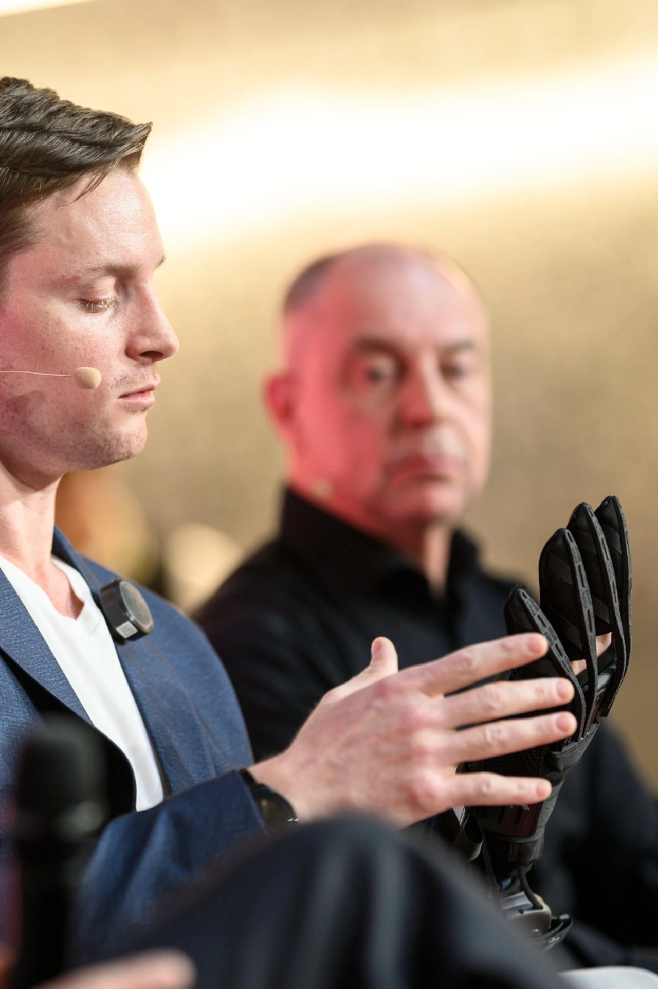 Im Health-Track der Münchner Digital-Life-Design Konferenz 2026 (DLD) saß Gründer Ryan Alicea gemeinsam mit Alexander Gerfer, CTO der Würth Elektronik eiSos Gruppe, und Prof. Dr. Lorenzo Masia, Professor für Intelligente Bio-Robotik-Systeme an der Technischen Universität München auf der Join Stage und stellte den durchaus holperigen Entwicklungspfad des Medizingerätes-to-be vor. Anhand des MotionMate-Handschuhs zeigte das Panel im Herzen des Hauses der Kommunikation von Serviceplan gleichzeitig exemplarisch, wie Startups, Industrie und Wissenschaft gemeinsam Health-Tech-Innovationen vom Prototyp zur quasi marktreifen Anwendung bringen.