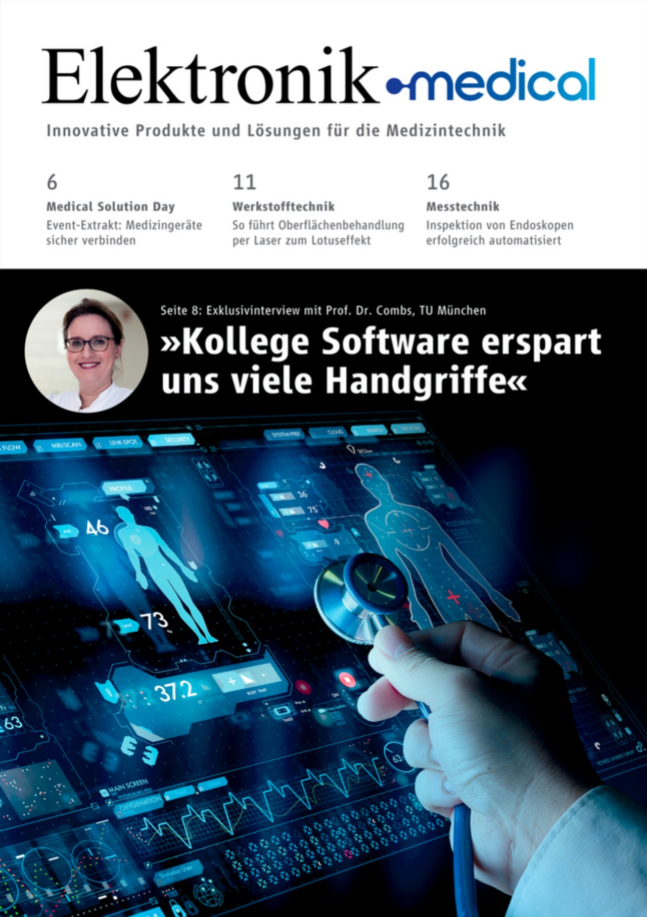 In der neuen Ausgabe 1/24 der Elektronik Medical finden Sie unsere Schwerpunkte »Displays / HMI / Connectivity«, »Kunst- und Werkstofftechnik« sowie »Messtechnik & Sensorik«. Blättern Sie digital durch das E-Paper, lesen Sie alle Artikel im Magazin-Stil oder über das Online-Inhaltsverzeichnis.
