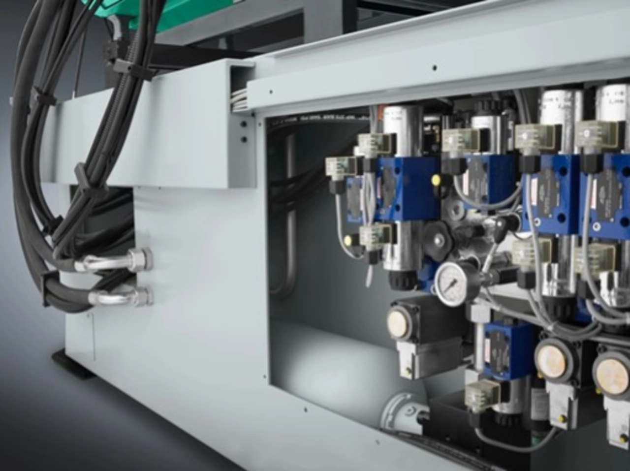 Die hybriden Allrounder der Leistungsvariante »Ultimate« arbeiten für höchste Anforderungen an Dynamik und Prozessfähigkeit mit Hydraulikspeichertechnik. Über separate Regelventile lassen sich hier alle Bewegungsachsen unabhängig voneinander ansteuern und fahren. Der Hydraulikspeicher sorgt für ein konstantes Druckniveau. Ergebnis sind dynamische, schnelle und gleichzeitige Bewegungen und mehr Möglichkeiten zur Prozesseinstellung, wie z. B. Einspritzen beim Schließen des Werkzeugs oder Prägen.