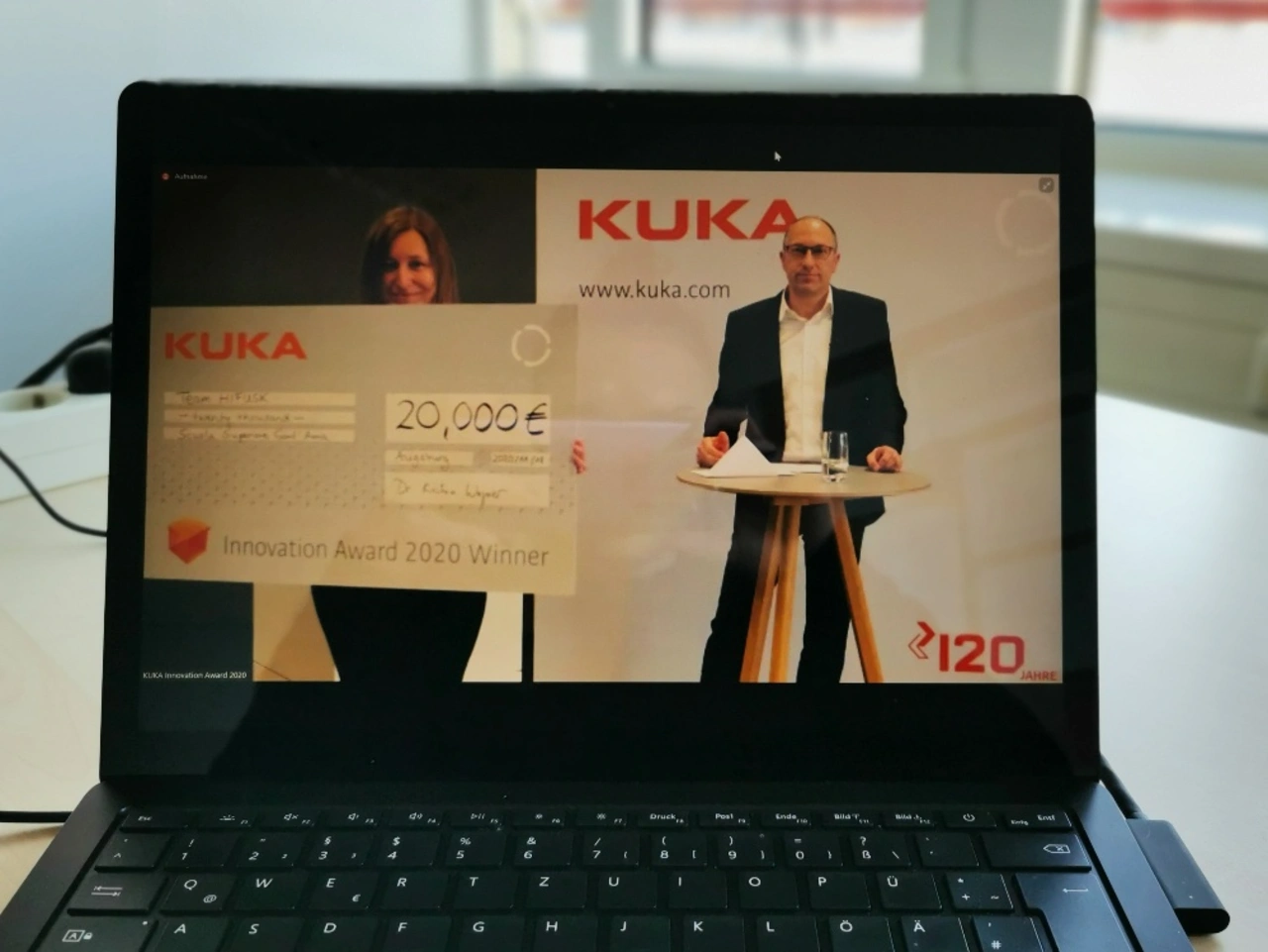 Diese Kombination – aus Roboter und nichtinvasivem Ultraschall – ermöglicht eine präzise chirurgische Behandlung ohne Schnitte, Anästhesie oder Ionisierungsenergie. Robotersteuerung und maschinelles Lernen gewährleisten ein sicheres Verfahren, auch bei geänderten Zielbewegungen während der Therapie.Aufgrund der Corona-Pandemie fand die Verleihung erstmals im Rahmen einer Live-Websession auf der virtual.Medica statt. Per Video verkündete Peter Mohnen, CEO der Kuka AG (Augsburg).