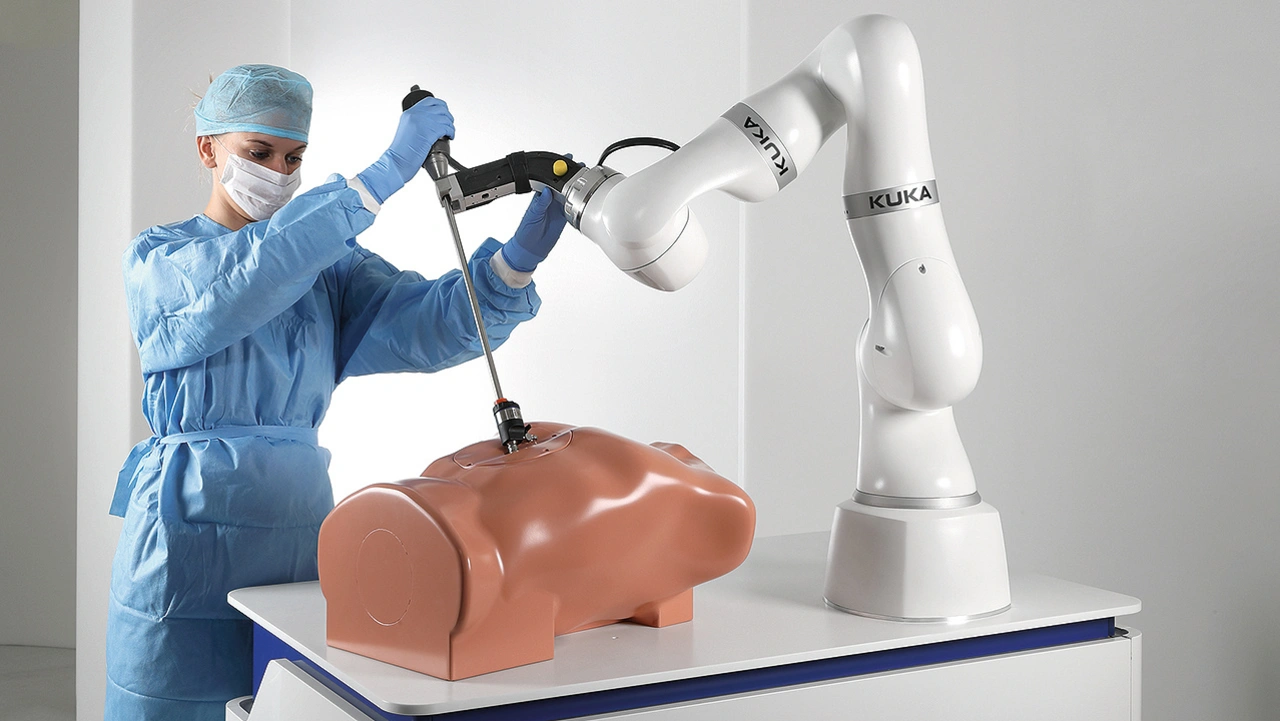 Das Jahr 1999 kann als Durchbruch für die Medizinrobotik betrachtet werden. Damals wurde das roboterassistierte Operationssystem Da Vinci des in Kalifornien ansässigen Unternehmens Intuitive in Europa zugelassen. Seitdem hat es Chirurgen bei mehr als 12 Millionen minimalinvasiven Eingriffen unterstützt. Ebenfalls 1999 bewährte sich erstmals ein Roboter aus Augsburg in der Medizintechnik: Während der Strahlentherapie hielt das Gerät der Firma Kuka einen Linearbeschleuniger, mit dem ein Tumor punktgenau bestrahlt wurde. Seitdem kommt Robotik von Kuka nicht nur in der Industrie, sondern vielfach auch in der Krebstherapie zum Einsatz. Und die Medizinrobotik gewinnt allgemein an Bedeutung: Eine aktuelle Statistik der International Federation of Robotics (IFR) zeigt, dass 2021 die Verkäufe dafür zugelassener Industrieroboter sowie kollaborativer Roboter, sogenannter Cobots, um 23 Prozent gestiegen sind.