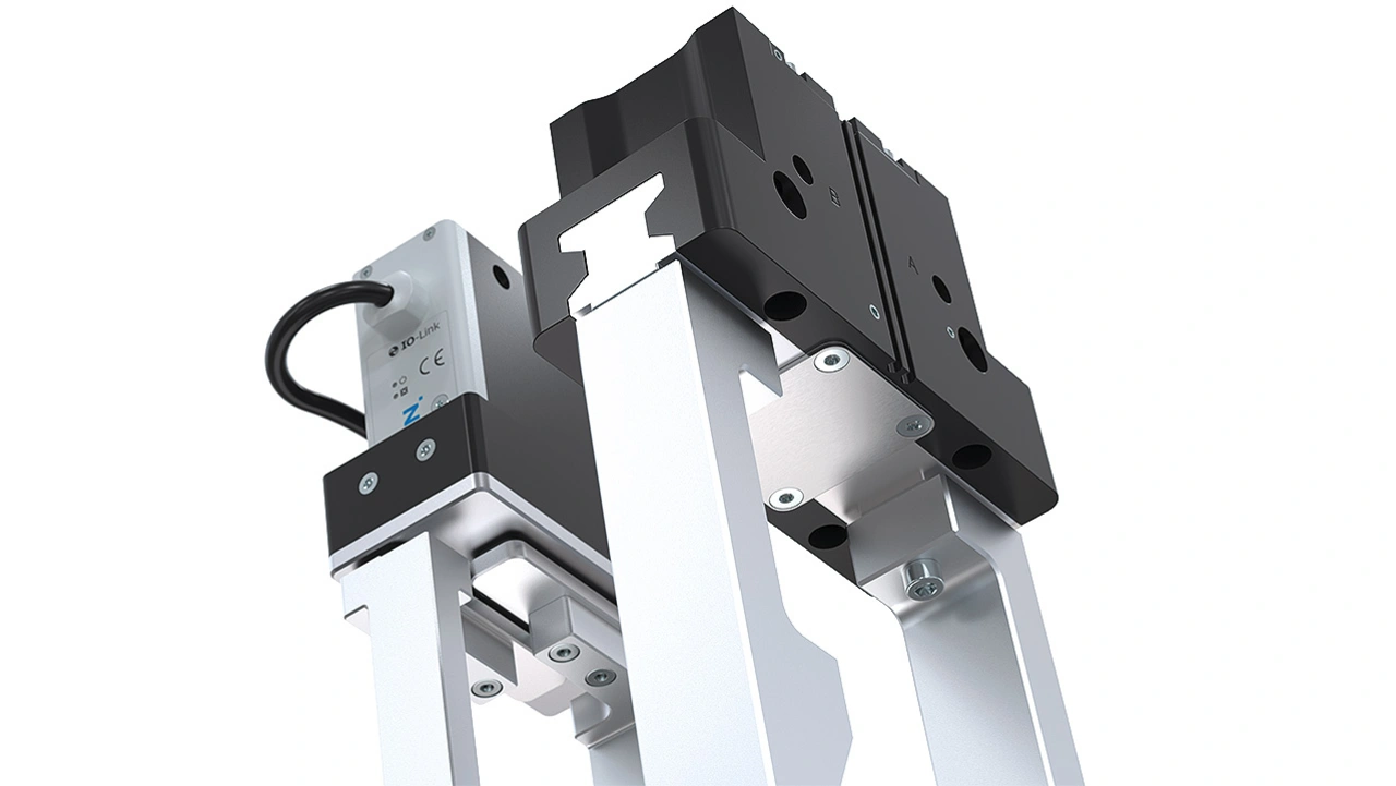 Die Greifer der Baureihe GEP2000 (Bild 2) sind deshalb bewusst serien- mäßig mit einer mechanischen Selbsthemmung ausgestattet, die auch bei Stromausfall oder Not-Aus einen sicheren Halt des Werkstücks gewährleistet. Praktisch ist die Notentriegelung, die in diesem Fall ein manuelles Öffnen des Greifers auch ohne Stromversorgung der Maschine ermöglicht.
