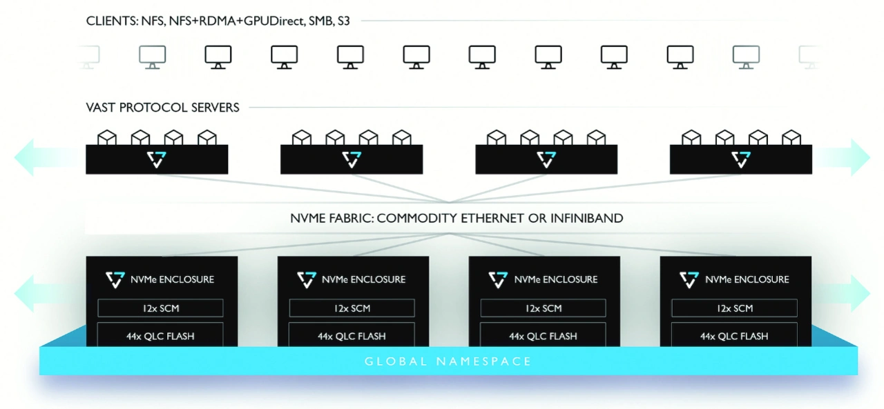 Die Universal-Storage-Architektur von Vast Data mit NFSoRDMA unterstützt NVIDIA Magnum IO (GPU Direct Storage), verbessert die KI-Forschung und spart dabei noch Geld und Ressourcen.