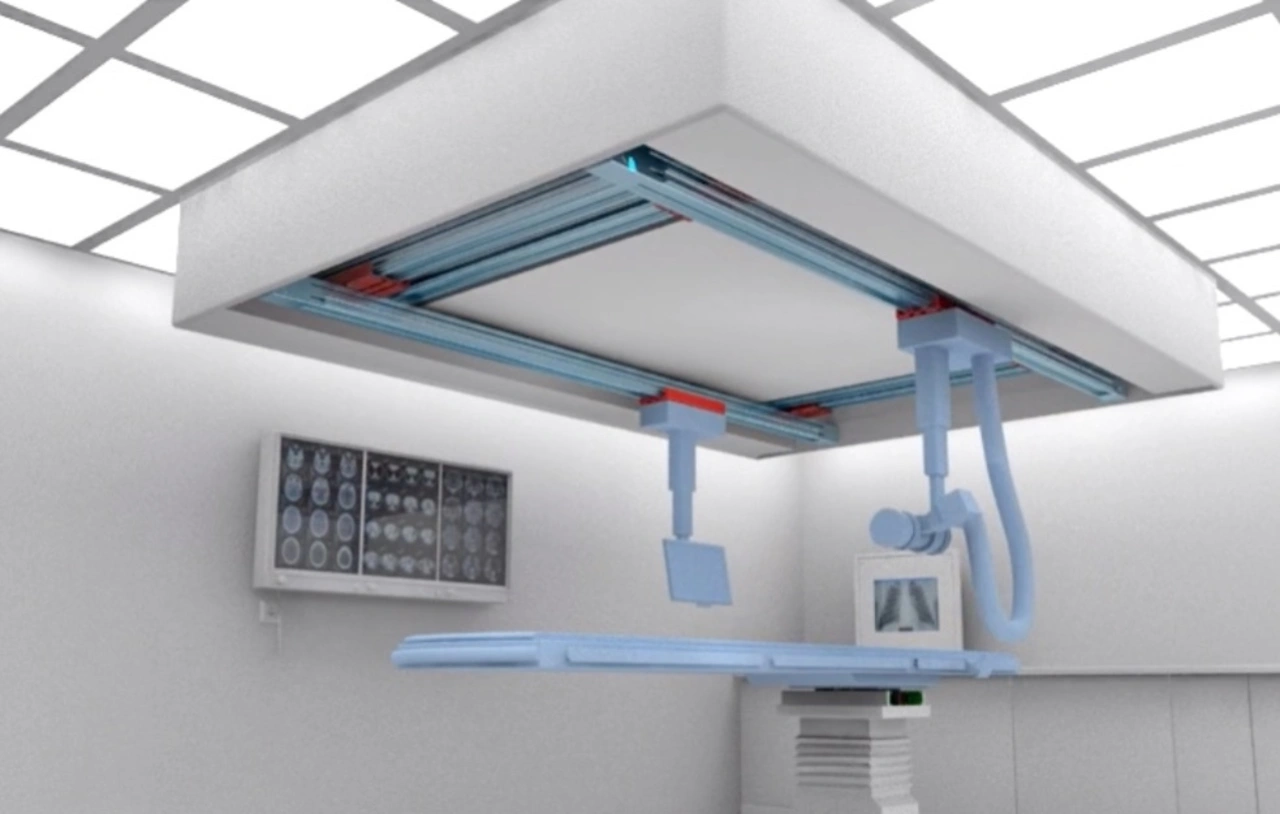 Damit das Personal in Operationssälen mehr Platz zum Arbeiten und zur effizienten Positionierung von Patienten und Geräten hat, erfolgt die Befestigung der Geräte (z.B. Röntgenapparate), Monitore und Kabel in vielen Fällen an deckenmontierten Auslegern. Um den Patienten vor Beeinträchtigungen zu schützen, müssen die zur Verstellung eingesetzten Linearachsen so konstruiert sein, dass Verunreinigungen durch austretende Partikel oder Schmierung ausgeschlossen sind. Für solche Fälle gibt es riemengetriebene Vakuumsysteme, die während des Systembetriebs freigesetzte Partikel langsam aufsaugen und zu den Luftfiltern leiten. Auch für geringere Anforderungen an die Partikelemission gibt es Produktlinien zur Auswahl.