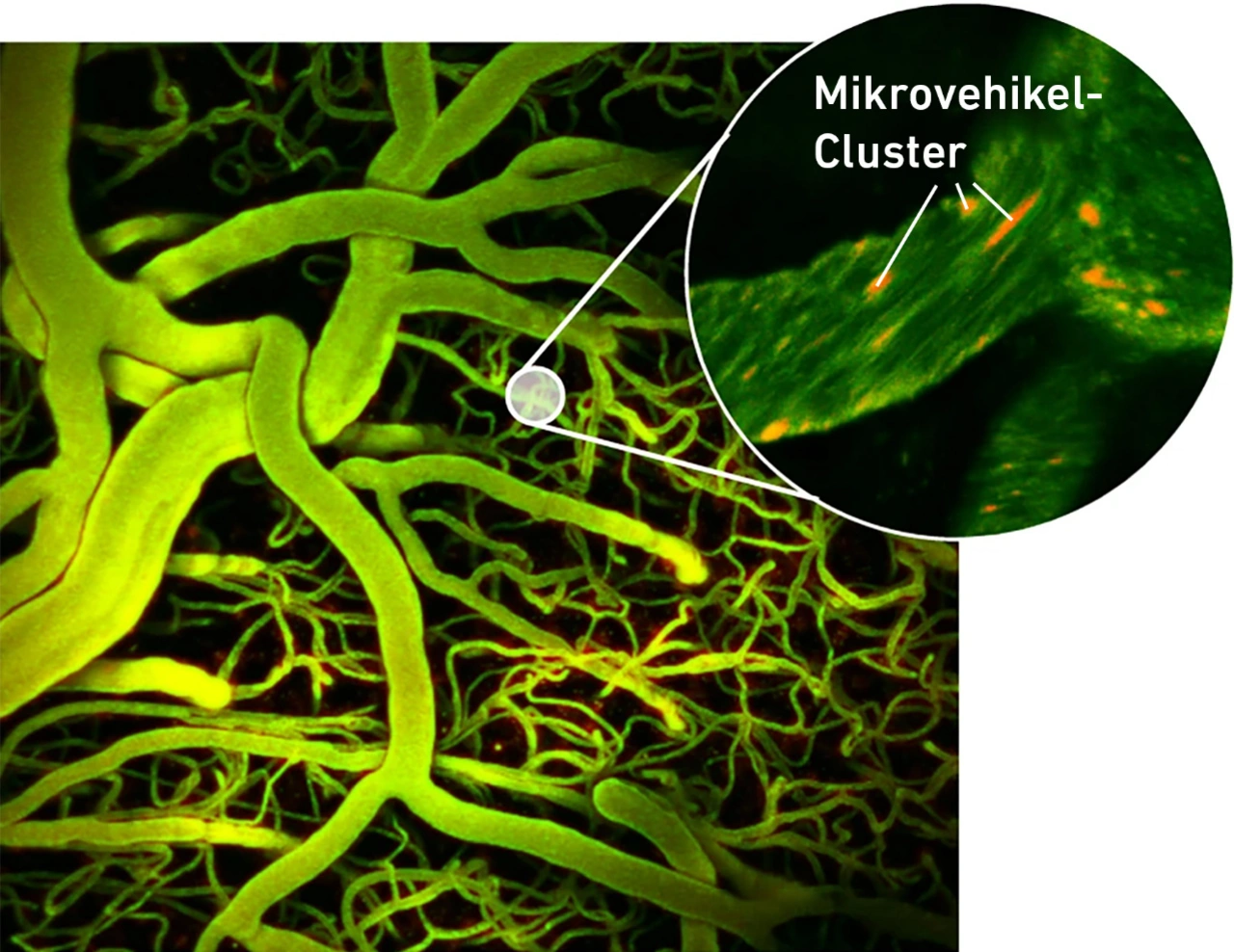 | Forschenden der ETH Zürich, der Universität und des Universitätsspitals Zürich ist es nun erstmals gelungen, mit Mikrovehikeln, die sich mit Ultraschall steuern lassen, durch die Blutgefässe im Gehirn eines Tieres zu navigieren. |