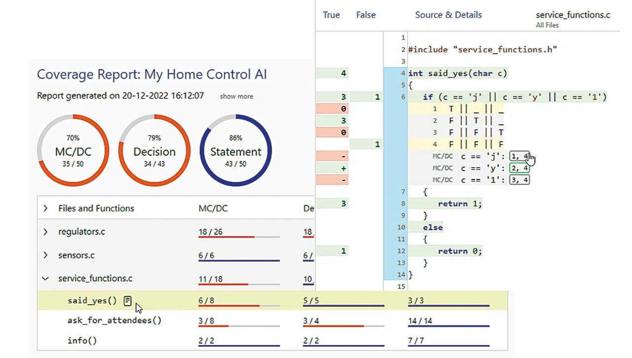Gute Coverage-Tools wie Testwell CTC++ unterstützen neben anderen Code-Coverage-Stufen auch dieses Coverage-Niveau und geben gezielte Hinweise darauf, warum bestimmte Funktionen nicht aufgerufen worden sind. Da das Tool während der Testausführung »passiv mitläuft«, macht das Werkzeug die Analyse der Code Coverage zu einer einfachen Tätigkeit. Die Analysen können im Rahmen von automatisierten Prozessen weiterverarbeitet werden und sind auch als verständliche HTML-Berichte abrufbar.