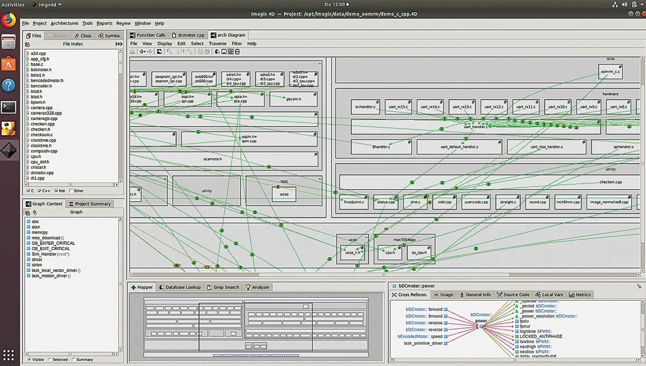 Hier können Tools wie beispielsweise Imagix 4D dabei helfen, die Beziehungen zwischen den unterschiedlichen Projektdateien aufzuzeigen und alle relevanten Informationen grafisch aufzubereiten. Somit steht eine Repräsentation des gesamten Projekts zur Verfügung, die alle Beziehungen in der jeweils benötigten Detailtiefe zeigt und es ermöglicht, den vorhandenen Code zu verstehen und seine Funktionalität nachzuvollziehen. Im nächsten Schritt kann der Code dann im Rahmen eines Refactorings bereinigt und in eine schlüssige Form gebracht werden. Zudem erlaubt das Tool, im Hinblick auf Zertifizierungen mit vertretbarem Aufwand eine umfassende Dokumentation zu erstellen.