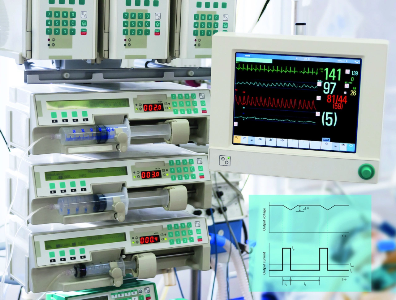 Medizinische Geräte wie hydraulische Betten, Infusionspumpen oder Beatmungsgeräte müssen zu ihrer konstanten Stromversorgung auf kurze, aber hohe Lastspitzen ausgelegt sein. Ein Überblick zu Lastarten, Überstromschutz und dezidierten Power-Designs für die Netzteilentwicklung.