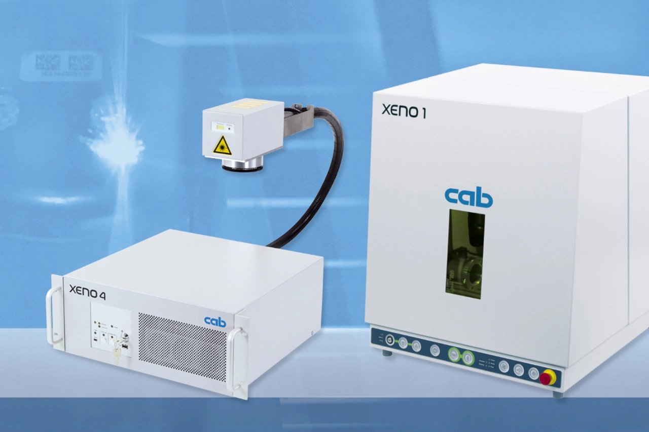Beim Faserlaser bildet der Kern einer Glasfaser das laseraktive Medium. Die am Markt angebotenen umfänglichen Beschriftungssysteme bestehen aus einer Steuereinheit mit integrierter Strahlquelle und einem Scankopf, der mit der Strahlquelle verbunden ist. Die Strahlquellen des cab Typs XENO 4 bieten wahlweise 20, 30 oder 50 Watt Ausgangsleistung. Höchste Strahlleistungen werden durch die Bündelung mehrerer Fasern erzielt. Zur Bündelung des Laserstrahls wird der Scankopf mit einem Planfeldobjektiv bestückt, mit dem sich ein bestimmtes Beschriftungsfeld abdecken lässt. Als Faustregel in der Branche gilt: Je kleiner das Beschriftungsfeld des Objektivs, desto höher die Auflösung der Beschriftung. Beim XENO 4 lassen sich mittels verschiedener Planfeldobjektive Beschriftungsfelder zwischen 69 mm x 69 mm und 290 mm x 290 mm abdecken. In dessen Folge ergeben sich für die Anwender weitere Vorzüge: