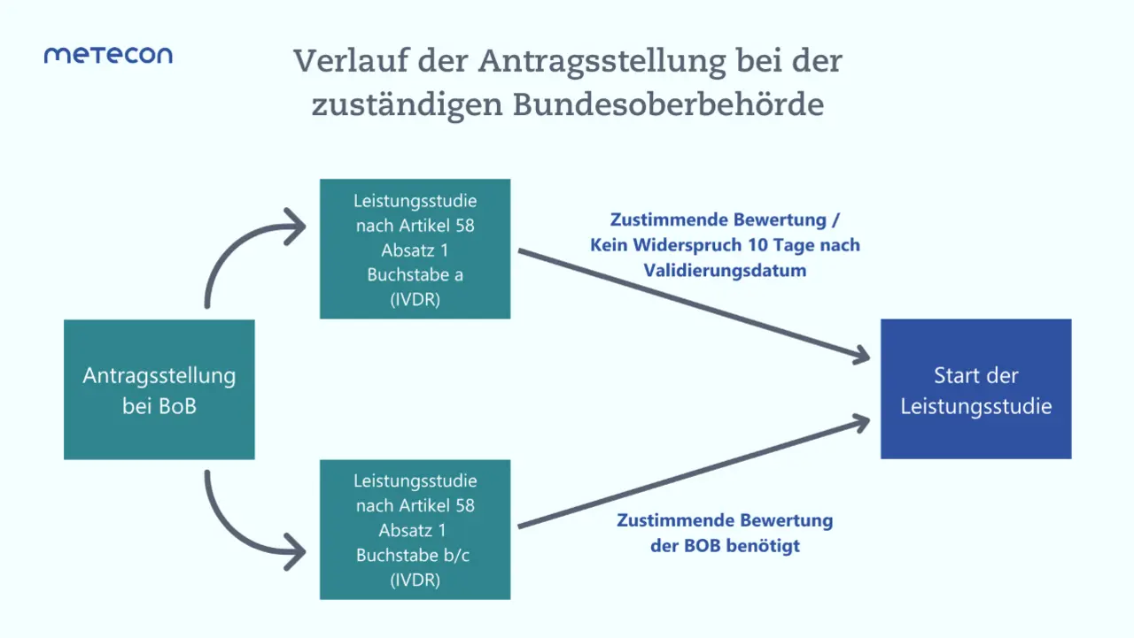 So darf mit Leistungsstudien, welche nach Artikel 58 Absatz 1 Buchstabe a der IVDR durchgeführt werden und bei denen die Probennahme kein erhebliches klinisches Risiko für die Prüfungsteilnehmer*innen darstellen, erst begonnen werden, wenn die BoB innerhalb von 10 Tagen nach Validierungsdatum nicht widersprochen hat.