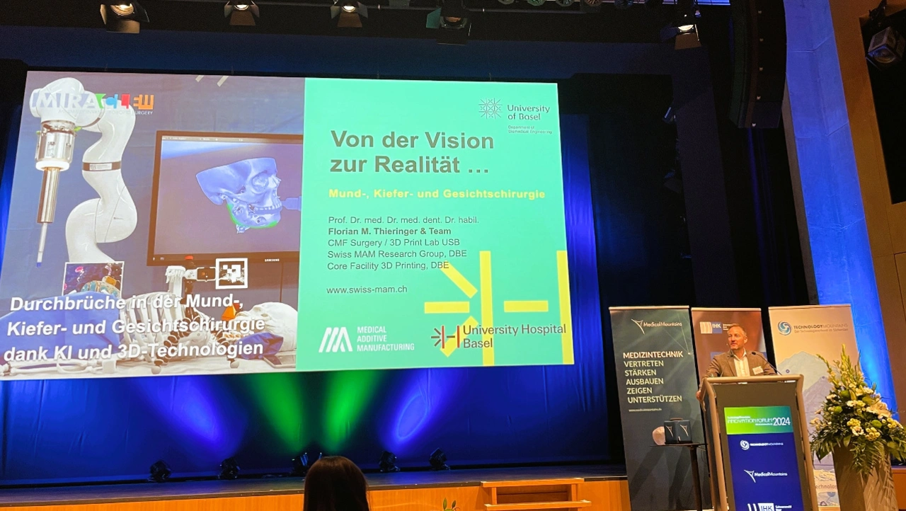 Wie im Falle von Kumovis sind es die konkreten Entwicklungen und Technologien, die in Tuttlingen berechtigte Hoffnung für die Medizintechnik spenden. Die Keynotes von Prof. Dr. mult. Florian Thieringer vom Universitätsspital Basel als auch von Prof. Jaques Marescaux vom Universitätsklinikum Straßburg zeigen sehr deutlich, dass spannende Technologien nicht nur »Zukunft« sind, sondern ganz konkret bereits in die klinische Praxis und die OP-Säle einziehen: digitalisierte und MDR-konforme Workflows von der Einlieferung, über die erste Bildgebung, bis zur simulierten OP-Planung, der personalisierten Fertigung und dem finalen Einsatz eines 3D-gedruckten Implantats bringen im Falle von Prof. Thieringer die medizinisch-additive Fertigung in Kombination mit computerassistierter Chirurgie an den Patienten. Neben langwieriger Regulatorik und Finanzierung nennt der Baseler Vorreiter sowie sein Straßburger Kollege vor allem das Mindset bei Ärzten und Herstellern als größte Hürde. Beide Chirurgie-Koryphäen sehen die Medtech-Firmen in der Verantwortung, stärker auf Ärzte zuzugehen und Ingenieure in den OP zu bringen, um innovativere Medizinprodukte schneller in die Praxis und damit auch die Zulassung zu bringen.