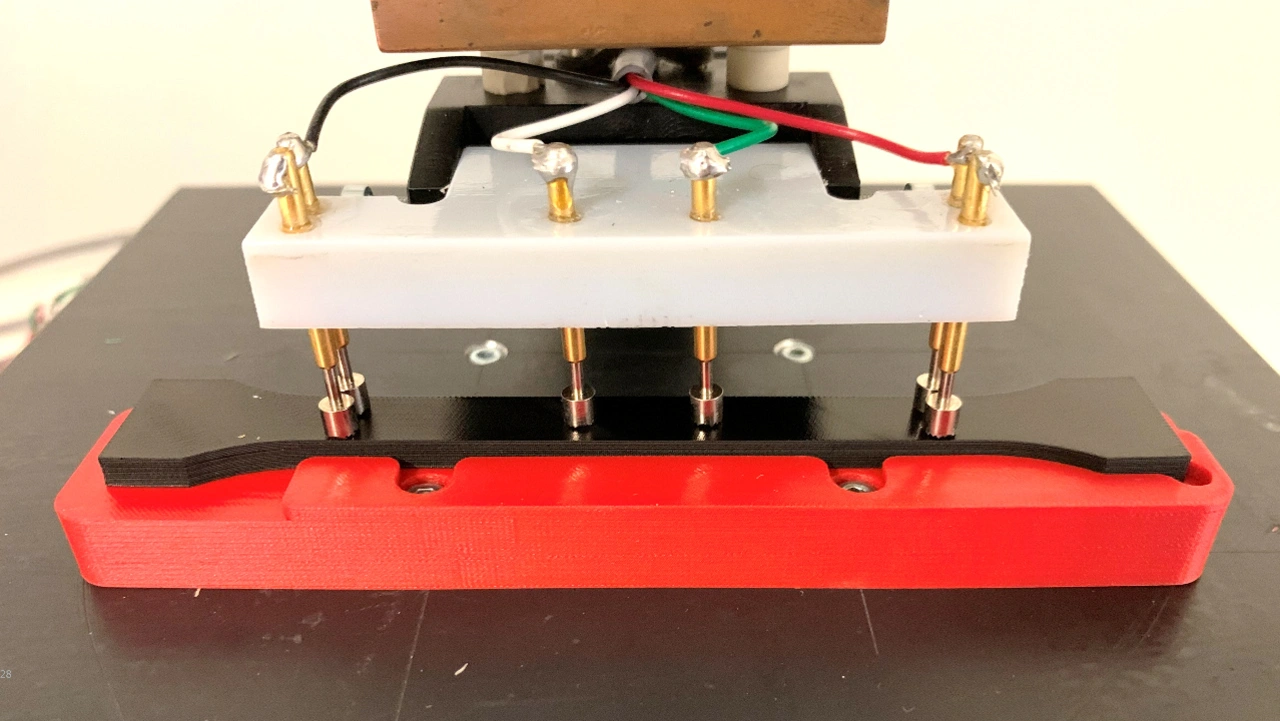 Das ausgewählte Material unterzogen Pfeffer und sein Team anschließend einer ganzen Reihe von Materialtests: Sie setzten es Hitze und Kälte aus, um zu prüfen, wie sich der elektrische Widerstand verändert. Sie leiteten Strom mit immer höherer Spannung hindurch, bis die Leiterbahnen durchschmorten. Sie dehnten das TPE, um herauszufinden, bis zu welchem Punkt es in seine ursprüngliche Form zurückfindet und wie die Leitfähigkeit unter Zug allmählich abnimmt. Sie ließen das Material künstlich altern, um zu sehen, wie sich das auf die Leitfähigkeit auswirkt. Und sie setzten es auf einem Flachdach ein Jahr lang Wind und Wetter aus, um herauszufinden, wie das TPE verwittert und wie sich seine Eigenschaften währenddessen verändern.
