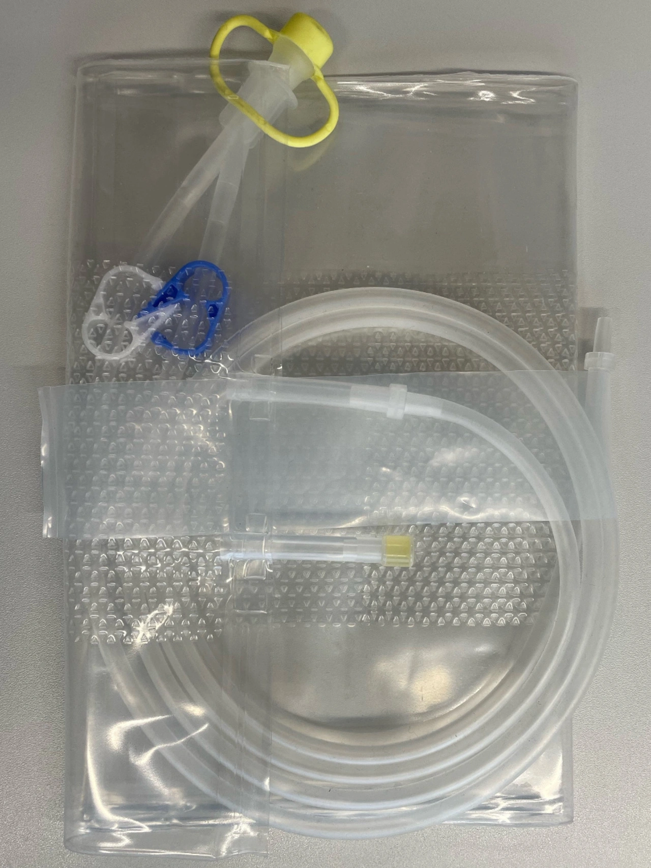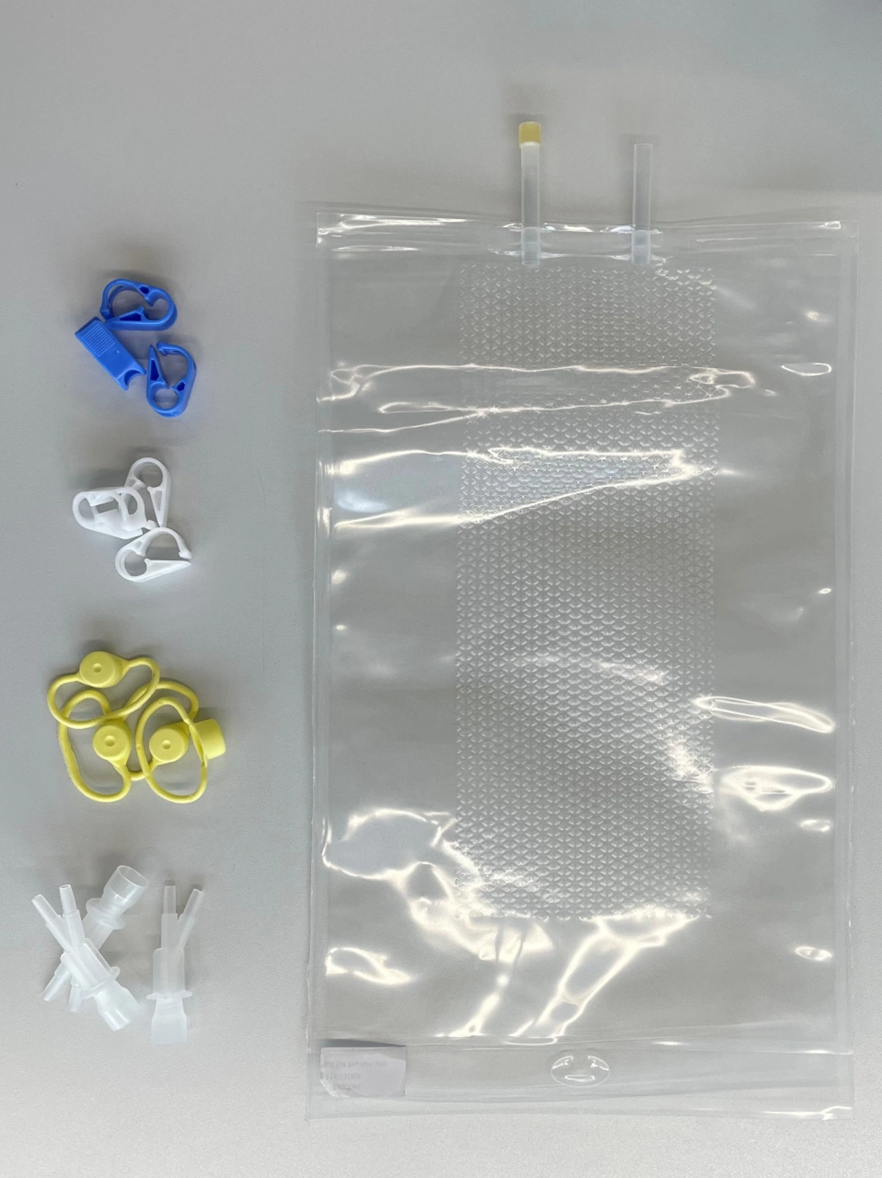 Da liegen einfach aussehende Einzelteile: eine blaue und eine weiße Klemme, eine gelbe Abziehkappe und ein Steckverbinder. Und da liegt das, was die Montage dieser Teile zum kompletten Schlauchset sehr anspruchsvoll macht: ein Schlauch und ein Beutel. Beide sind »biegeschlaff«. Diese Eigenschaft läßt Verantwortlichen für Handling und Montage in der Medizintechnik-Produktion schon einmal innehalten.Denn es ist nicht einfach, einen Schlauch ab- und aufzuwickeln, in definierter Länge zuzuschneiden, mit anderen Teilen zusammenzufügen usw. – schon gar nicht, wenn das automatisiert ablaufen soll. Die modularen Anlagen von Knoll Feinmechanik können genau das. Der folgende Anwenderbericht beschriebt einen Arbeitsschritt des vollständig automatisierten Gesamtprozesses: das Zusammenfügen von Schlauch und Beutel.