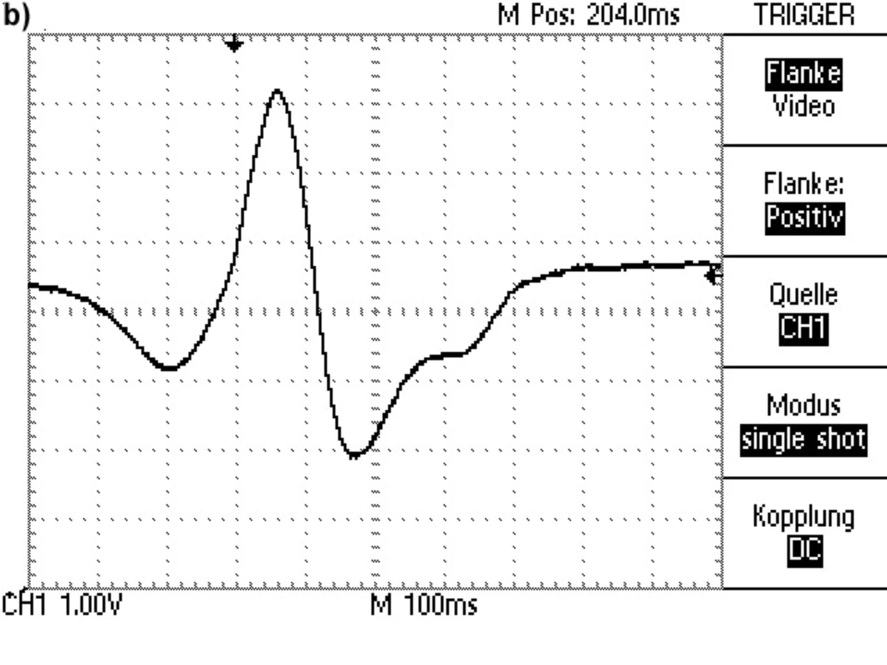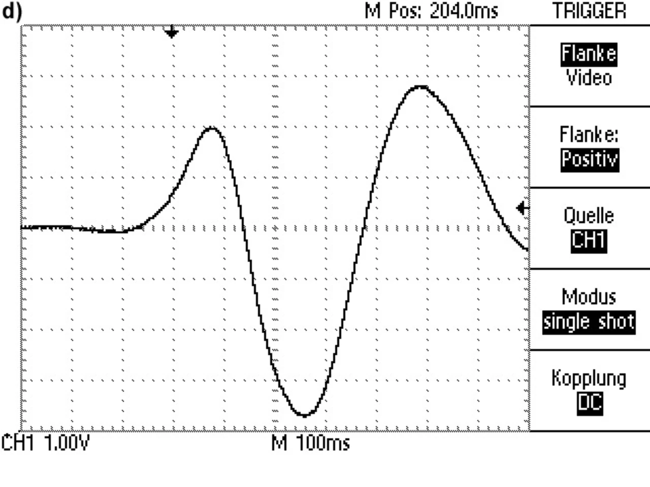 Mit diesem Messumformer aufgezeichnete typische Signalverläufe beim Öffnen und Schließen einer Tür in einem Gebäude zeigen die Bilder 2a bis 2d. Selbst mit der relativ einfachen Signalaufbereitung erhält man ein Nutzsignal mit hohem Informationsgehalt – Signalverlauf, Amplitude, Impulsbreite, Periodendauer. Mit einer nachgeschalteten Auswerteelektronik kann man daraus eine einfache Warnanlage realisieren.