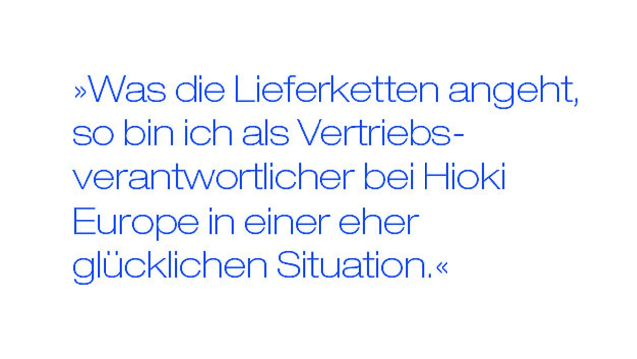 Kai Scharrmann: Was die Lieferketten angeht, so bin ich als Vertriebsverantwortlicher bei Hioki Europe in einer eher glücklichen Situation. Natürlich sind auch wir von Lieferkettenproblemen betroffen, und natürlich haben auch wir Schwierigkeiten, bestimmte Produkte in der gewünschten Zeit und in der gewünschten Menge zu liefern. Ich sehe gleichzeitig aber auch, welche Anstrengungen unsere Kollegen in Japan unternehmen und welche Kosten und Aufwände in Kauf genommen werden, um Geräte liefern zu können. Wenn Sie im Vertrieb wissen, dass die Kollegen im Werk Chips bei Brokern teilweise zum vierzigfachen Preis einkaufen und Produkte erst dann nicht mehr geliefert werden, wenn selbst die Broker keine Teile mehr haben, dann können Sie mit gutem Gewissen Vertriebspartnern und Kunden sagen, dass alles Mögliche getan wird, um lieferfähig zu bleiben. Dazu kommt, dass wir keine Bestellungen für Produkte annehmen, wenn wir nicht wissen, wann die Ware kommt. Das ist transparent und fair gegenüber unseren Kunden.