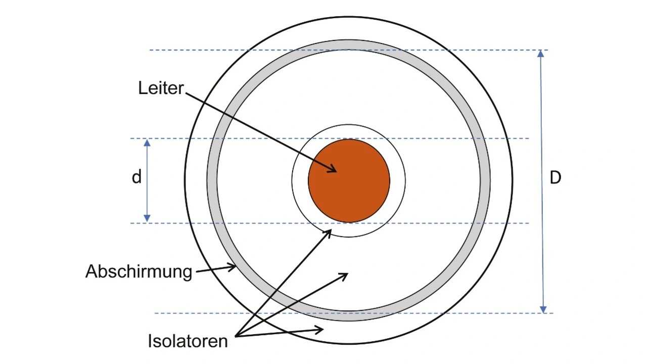 wobei ε0 die elektrische Feldkonstante (8,85 * 10-12 F/m) und εr die relative Permittivität des Isolators ist, zum Beispiel 2,25 für Polyethylen.