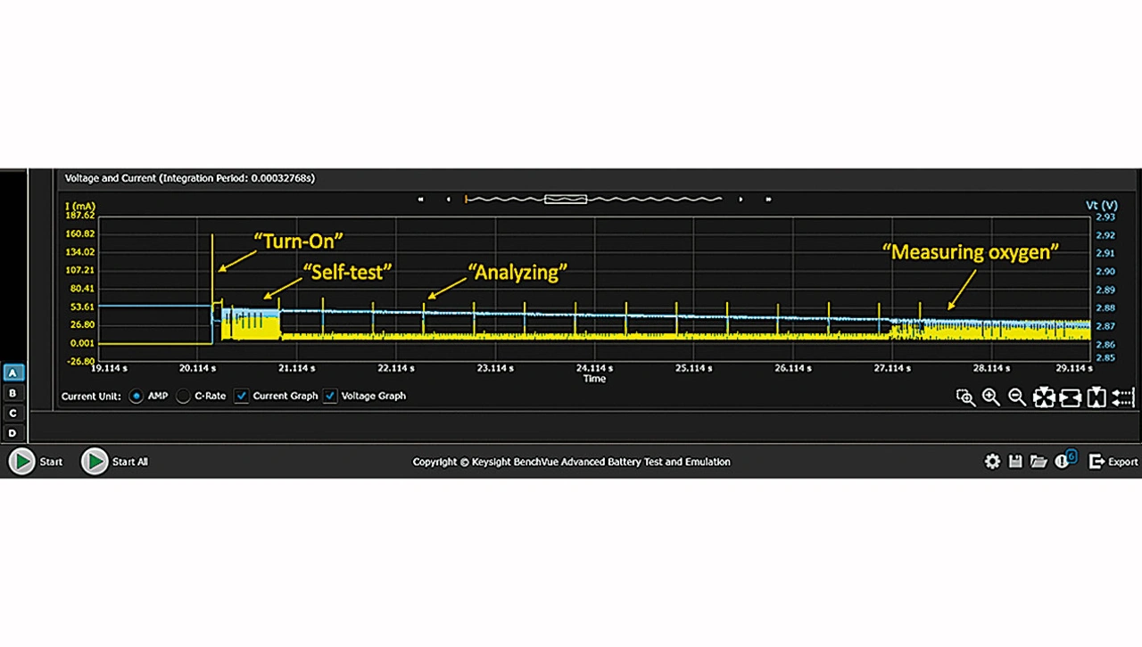 Durch die schnelle Emulation einer Batterie bei verschiedenen SoCs erhält man in kurzer Zeit einen tiefen Einblick in das Verhalten eines Geräts. Bild 6 zeigt Erkenntnisse über die Stromaufnahme eines Geräts. Die Messungen aus dieser Analyse werden genutzt, um das Design des IoT-Geräts zu ändern und die Batterielaufzeit zu verbessern.