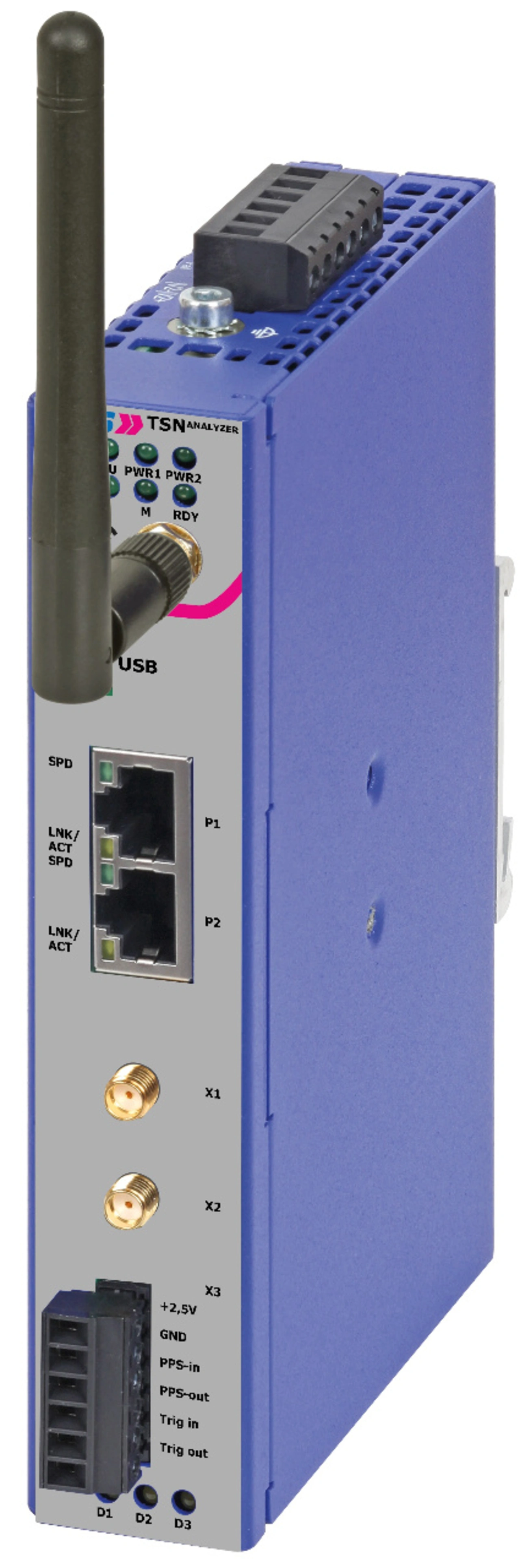 Der TSN-Analyser ermöglicht einen intuitiven Einstieg in die Diagnose von TSN-Netzwerken. Er ist vielseitig einsetzbar und lässt sich sowohl für die Produktentwicklung im Labor verwenden als auch für den permanenten Betrieb im Produktionsnetzwerk. Denn durch die robuste Bauform, Hutschienenmontage und eine redundante Spannungsversorgung mit weitem Eingangsspannungsbereich ist das Gerät für einen Dauerbetrieb in industrieller Umgebung mit wechselnden Umgebungstemperaturen konstruiert.