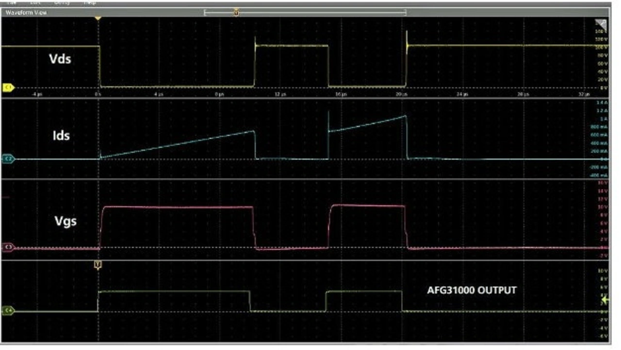 Der Doppelpulstest benötigt zwei Spannungsimpulse mit unterschiedlichen Impulsbreiten, was aufgrund der zeitaufwendigen Erzeugung von Impulsen mit unterschiedlichen Impulsbreiten ein bemerkenswerter Aufwand ist. Einige dieser Herangehensweisen beinhalten das Erstellen von Signalformen auf dem PC und das Hochladen in einen Funktionsgenerator. Andere verwenden Mikrocontroller, die viel Aufwand und Zeit für die Programmierung erfordern. Wie jedoch in einem realen Beispiel gezeigt, bietet ein AFG mit Doppelpulssoftware eine einfache Möglichkeit, Impulse mit unterschiedlichen Impulsbreiten schnell und zuverlässig zu erzeugen, um eine Vielzahl von Testszenarien abzubilden.