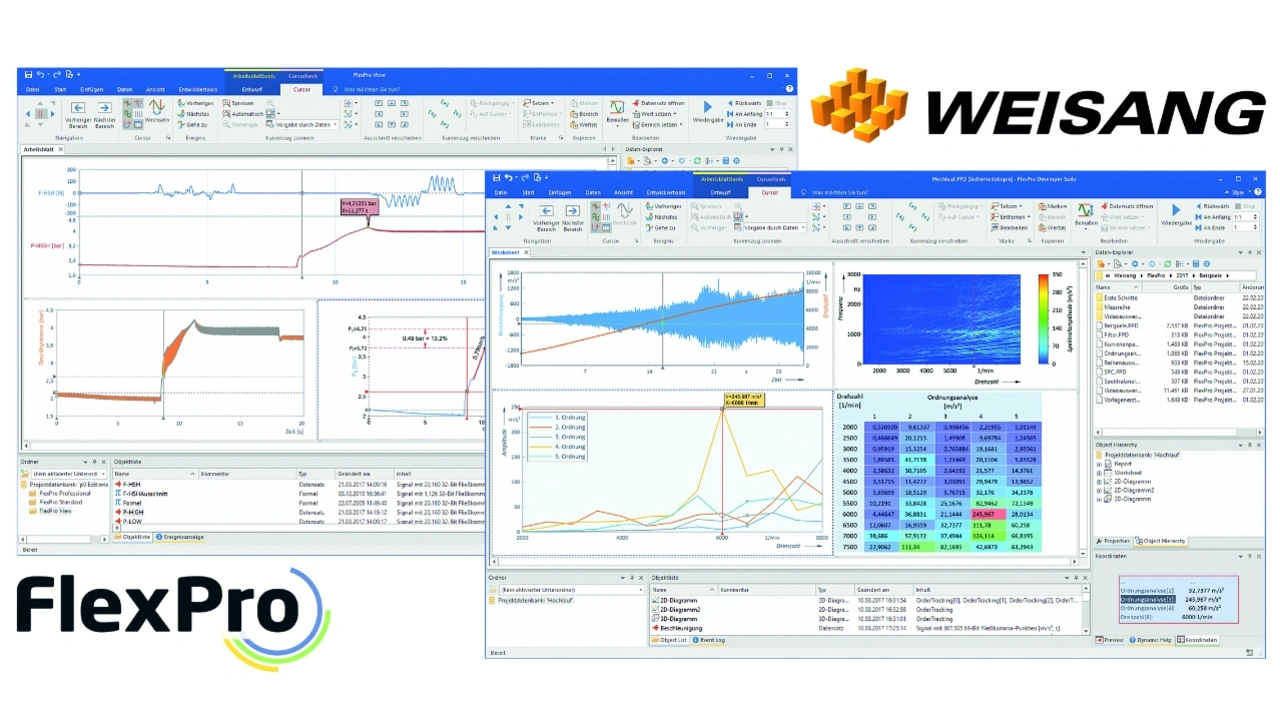 Bei komplexen Messaufgaben fallen oft große Datenmengen aus verschiedenen Quellen an. Um daraus aussagekräftige Ergebnisse abzuleiten, sind effiziente Analyseverfahren erforderlich. Oft müssen die Informationen zudem für bereichsübergreifende Entscheider aufbereitet werden. Die software-basierte Auswertung von Messwerten reduziert den Analyseaufwand erheblich und unterstützt einen fehlerfreien Prozess. Hier setzt die Messdatensoftware FlexPro von Weisang an. Sie wurde entwickelt, um Messwerte zu visualisieren, Daten zu organisieren und detailreiche Analysen durchzuführen. Sie unterstützt die Auswertung und Präsentation der Messdaten, von der einfachen Statistik bis hin zur komplexen Analyse. FlexPro ist ideal, wenn große Datenbestände aus verschiedenen Quellen zentral verarbeitet werden sollen.