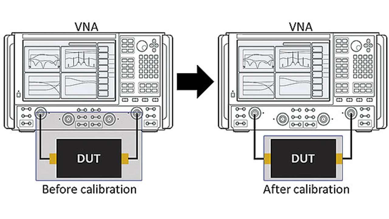 Durch Anwendung der Vektor- und Quellenkalibrierung auf die EVM-Messung liefert der VNA die geringste Rest-EVM, indem er die Referenzebene auf die des Prüflings verschiebt (Bild 4). Das bedeutet, dass der Netzwerkanalysator alle Fehlerbeiträge des Testsystems aus den EVM-Ergebnissen des Leistungsverstärkers entfernt.