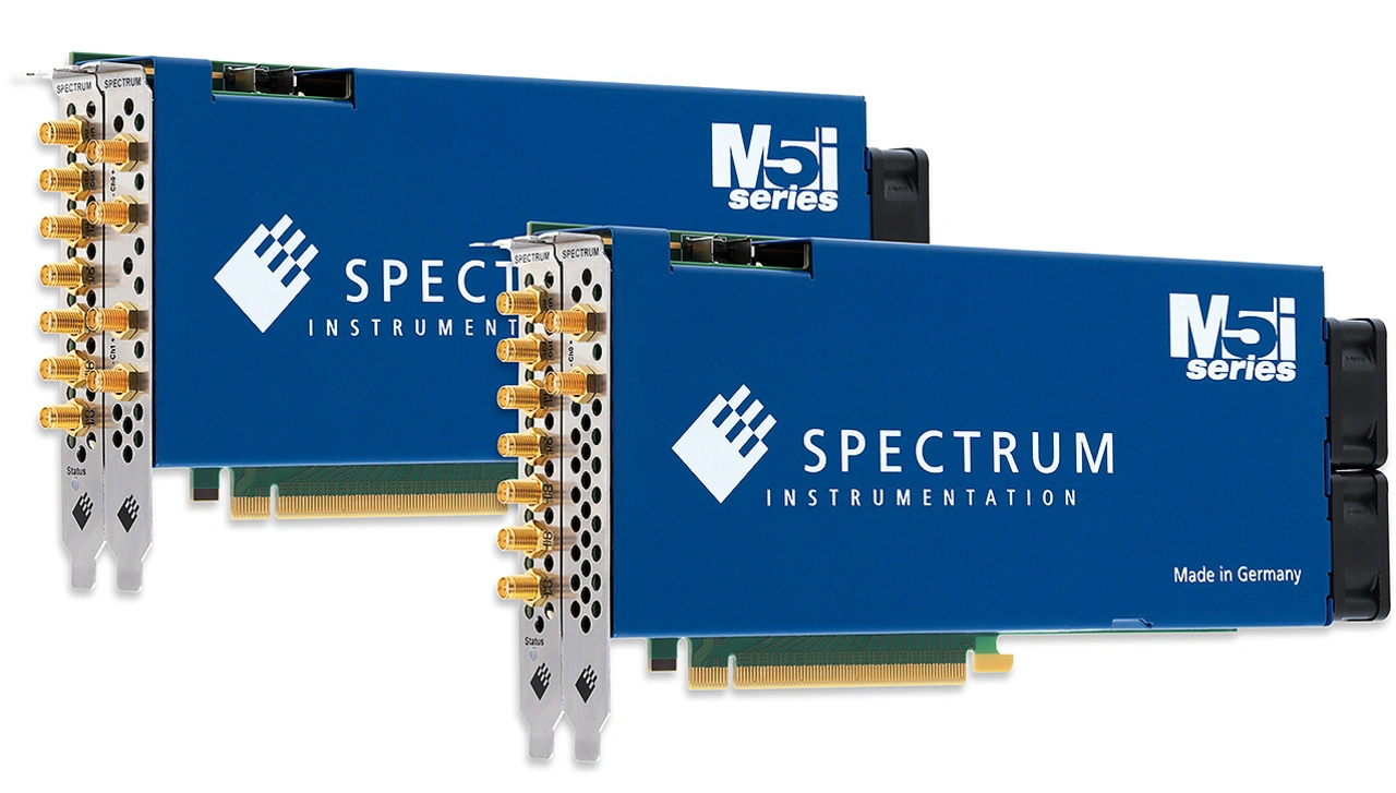 Neun Jahre Entwicklungsarbeit stecken in den Nachfolgern der bisherigen PCIe-Signalgenerator-Flaggschiffe von Spectrum Instrumentation. Und das hat sich gelohnt: In der neuen Arbitrary-Waveform-Generator-Serie M5i.63xx ist es den Ingenieuren gelungen, die Geschwindigkeit von 1,25 GS/s auf ganze 10 GS/s zu steigern. Damit bieten sich die neuen PCIe-Karten als leistungsstarke Alternative zu Tischgerät-AWGs an, bei denen das Laden von Daten für neue Wellenformen oft nur langsam möglich ist. Die neuen Karten hingegen bieten einen riesigen Onboard-Speicher von bis zu 8 Gigasamples (16 GB) und die Möglichkeit, Daten mit bis zu 10 Gigabyte pro Sekunde direkt von CPUs oder sogar GPUs zu streamen.