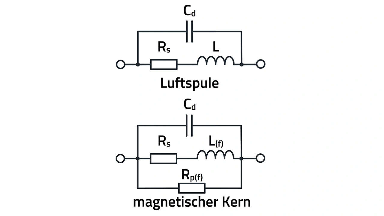 Die Ersatzschaltung einer Induktivität ohne magnetischen Kern ist in Bild 3 oben dargestellt.