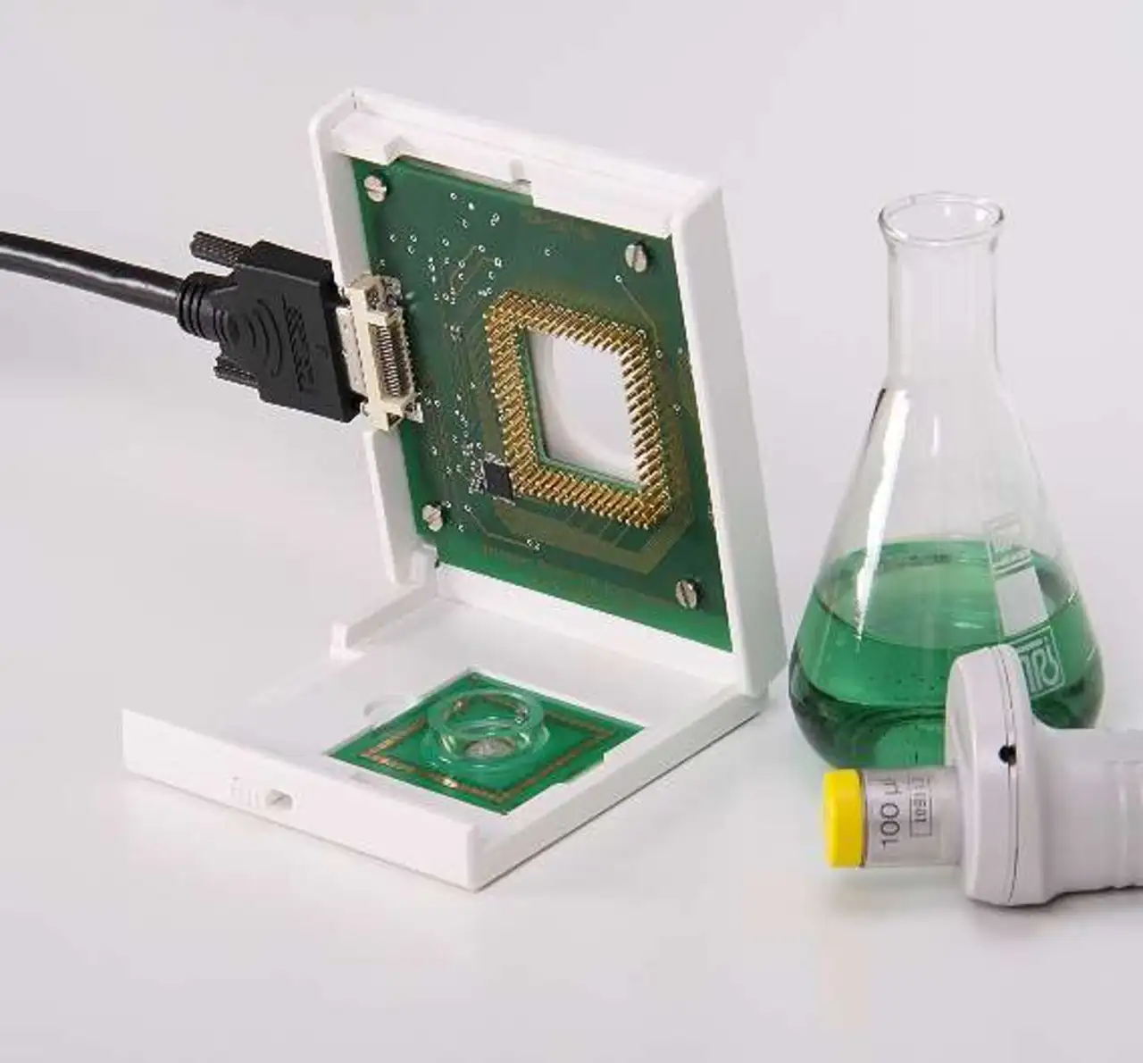 In der Forschung seit langem etabliert sind Anwendungen der Impedanzspektroskopie auf Mikroelektrodenstrukturen für die Überwachung von Zellkulturen. Sciospec entwickelte hierfür ein spezielles Frontend mit integriertem 60-Kanal-Multiplexer, das »MEA«-Rack (Bild 1), mit dem sich verschiedenste Arten von Biochips für die Impedanzspektroskopie einfach nutzen lassen.