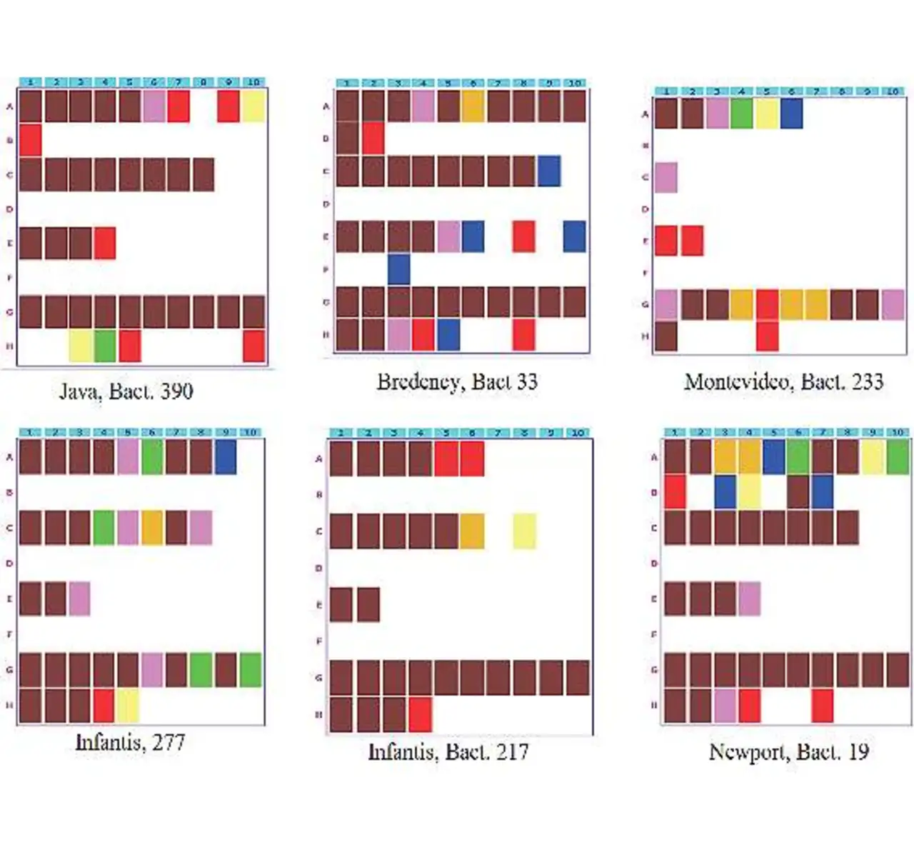 Damit ist dieses Verfahren Alternativen wie »Pulsed-phase Gel Electrophoresis« weit überlegen. Die Markerbibliothek besteht aus 240 verschiedenen Elementen, die an spezifischen Stellen eines Bakteriums anbinden können. Je nach Eigenschaften eines bestimmten Bakterien-Subtyps sind andere Kombinationen dieser Bindestellen vorhanden, also andere Marker dafür sensitiv. Auf der Basis dieser Empfindlichkeiten lässt sich nun für verschiedene Subtypen von Bakterien eine Art »Fingerabdruck« erzeugen, der eine eindeutige Unterscheidung ermöglicht.