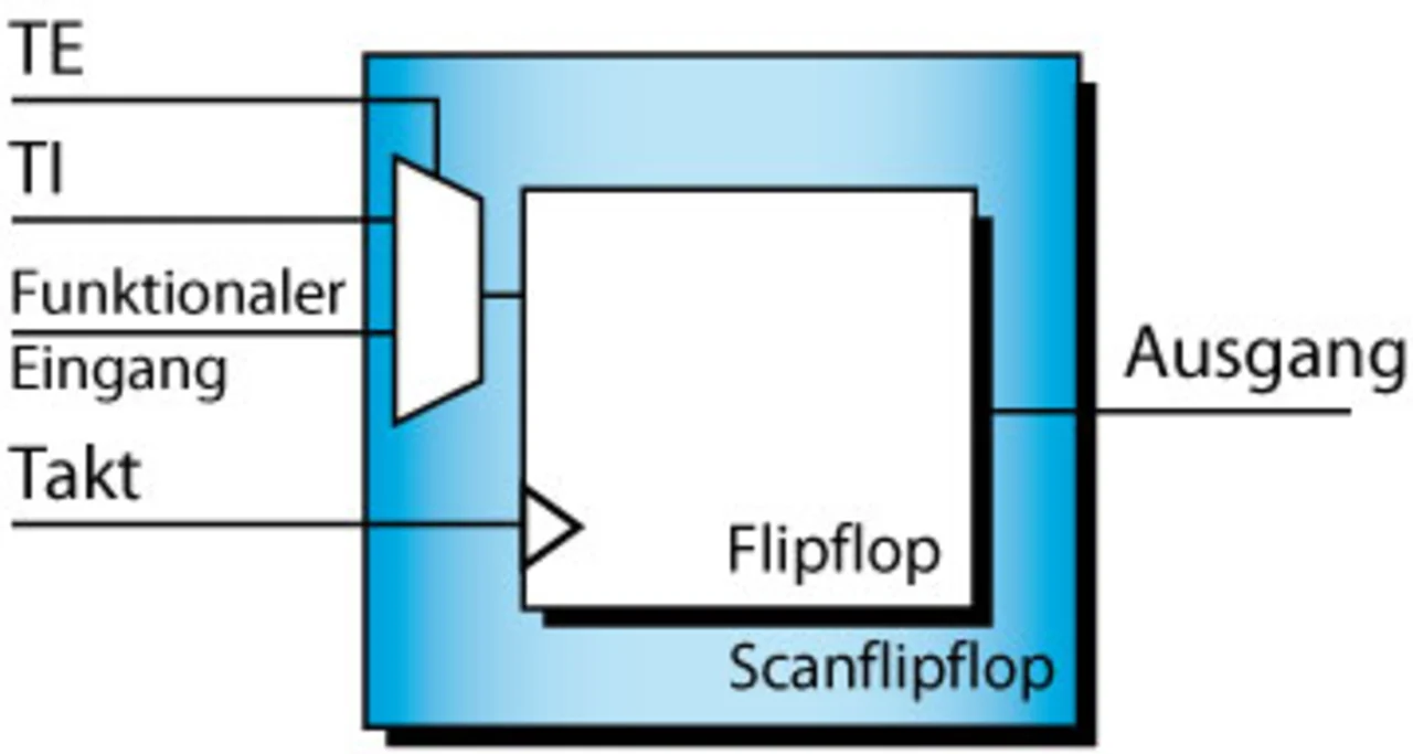 Für den Iddq-Test müssen alle internen Knoten auf einen bestimmten logischen Wert gebracht werden. Dazu wird vom Tester jeweils ein Vektor über die so genannten Scanketten eingeschoben. Diese werden gebildet, indem in einem speziellen Testmodus alle Flipflops zu Schieberegistern geschaltet werden (Kasten „Scantest“, Bilder 2 und 3). Damit ist es möglich, jeden Flipflop-Ausgang nach Belieben auf 0 oder auf 1 zu setzen. Würde man nur die Flipflop-Ausgänge betrachten, so würden für einen kompletten Iddq-Test zwei Vektoren genügen (einer, um alle Flipflop-Ausgänge auf 0, ein zweiter, um alle auf 1 zu setzen). Da aber nicht nur jeder Flipflop-Ausgang, sondern auch jeder Knoten der von den Flipflops getriebenen kombinatorischen Logik einmal auf 0 und einmal auf 1 gesetzt sein muss, sind in der Praxis ca. 20 bis 400 Iddq-Vektoren nötig. Noch mehr werden es, wenn man auch alle (hochohmigen) Kurzschlüsse zwischen benachbarten Signalleitungen detektieren will, was bedeutet, dass an diesen mindestens einmal die Kombination 0/1 oder 1/0 anliegen muss. Die Vektoren für den Iddq-Test werden üblicherweise von dem gleichen EDA-Tool (Electronic Design Automation) erzeugt, das auch die Vektoren für den Scantest erzeugt.