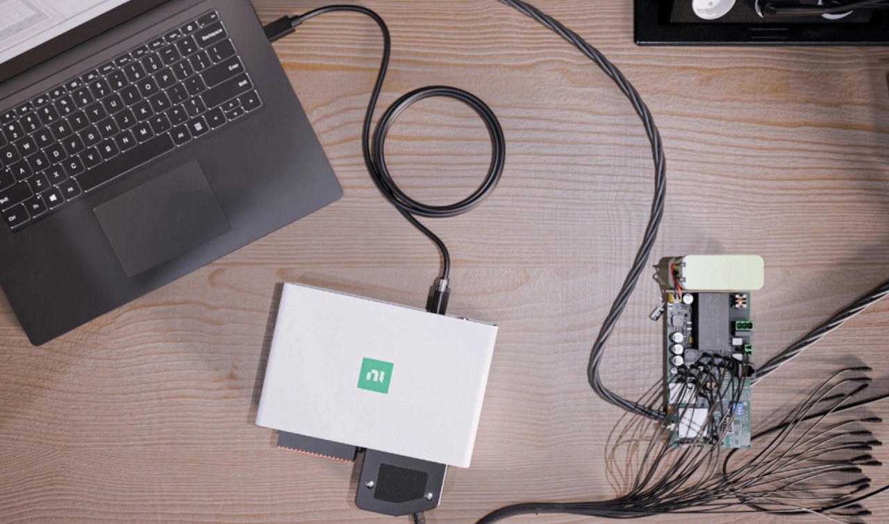 Hier setzt das neue System mioDAQ USB von NI an. Es bietet die nötige Performance und Flexibilität, um die Markteinführung elektronischer und elektromechanischer Systeme zu beschleunigen. Über einen USB-Typ-C-Anschluss wird es mit einem einzigen Kabel an Laptop oder Desktop verbunden, um Daten zu erfassen, zu analysieren und gleichzeitig die Stromversorgung sicherzustellen. Mit bis zu 16 Kanälen, 20 Bit Auflösung, ±10-V-Messbereichen sowie digitalen I/O- und Zähler-/Timerkanälen eignet sich das System für leistungsfähige und flexible Test- und Entwicklungsumgebungen (Bild 1).