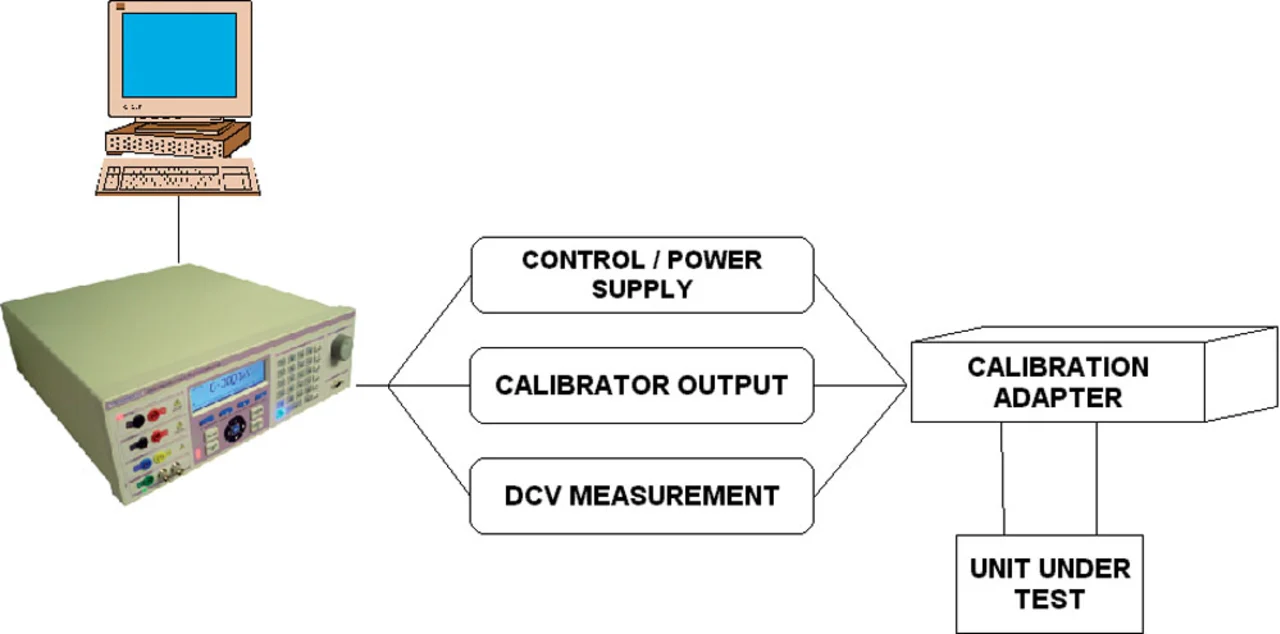 Eine Lösung besteht darin, dem Universalkalibrator, etwa einem Gerät der Serie »3000« des Herstellers Transmille (Vertrieb: CompuMess), Mess- und Steuerungsfunktionen hinzuzufügen. Die Gerätekosten erhöhen sich dadurch nur geringfügig, der Arbeitsdurchsatz hingegen umso mehr. Bei Kalibratoren für Anwendungen in der Prozesskontrolle sind Messfunktionen natürlich schon seit langem nicht mehr wegzudenken. Welche Vorteile jedoch Messungen mit einem Universalkalibrator bieten, ist weniger bekannt, da ja in fast jedem Kalibrierlabor ein DMM (digitales Multimeter) vorhanden ist. Tatsächlich werden die Vorteile, Gleichspannungsmessungen mit einem Universalkalibrator durchzuführen, erst in Verbindung mit einem externen Adapter für spezielle Funktionen voll ersichtlich (Bild 1). Dieser externe Adapter kann ein relativ einfaches Gerät sein, da er über keine genauen und teuren Referenzquellen, Prozessoren, Anzeigen und Computerschnittstellen verfügen muss.