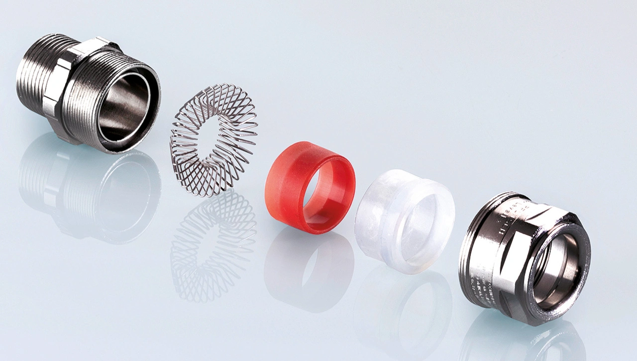 Kabeleinführungsspezialist Pflitsch begegnet den Montageproblemen bei seinen Baureihen »UNI Dicht«, »blueglobe« und »LevelEx« mit der patentierten TRI-Feder-Technologie, die das Schirmgeflecht rundum sicher mit der Kabelverschraubung kontaktiert. Statt Schirmgeflechte mühsam abzulängen und aufzulegen, reicht es bei der Lösung von Pflitsch, den Kabelmantel lediglich an der Kontaktstelle zu entfernen. Das so vorbereitete Kabel wird einfach durch die Verschraubung geschoben, und die TRI-Feder sorgt automatisch und am freigelegten, intakten Schirmgeflecht für einen sicheren EMV-Kontakt, selbst bei unrunden oder außermittig liegenden Kabeln.