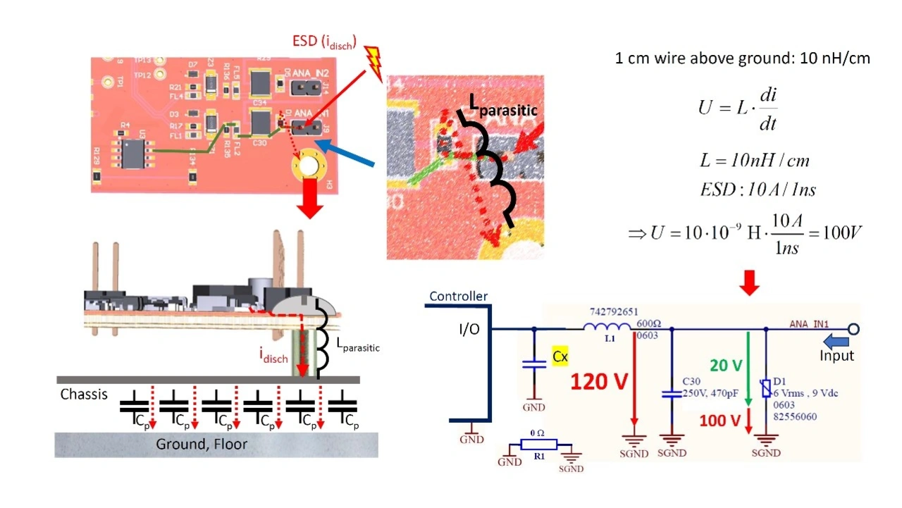 Dieser Mechanismus, auch elektromagnetische Kopplung genannt, tritt auf einer Leiterplatte zwischen integrierten Schaltungen (ICs) und Leiterbahnen aufgrund verschiedener Effekte auf: