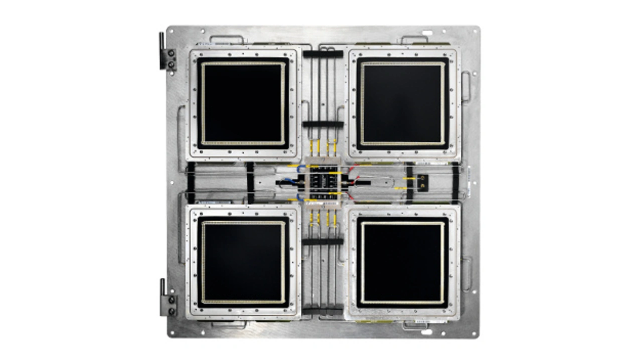 Vier Cluster mit Signalverteiler, Kühlkomponenten, Spannungsversorgung und Mechanik bilden zusammen eine Einheit. Vier dieser Einheiten werden an eine zentrale Baugruppe angeschlossen und stellen dann ein vollständiges Array dar. Zwei derartige Arrays sind über schnelle PCI-Express-Schnittstellen mit einem Industrierechner verbunden.