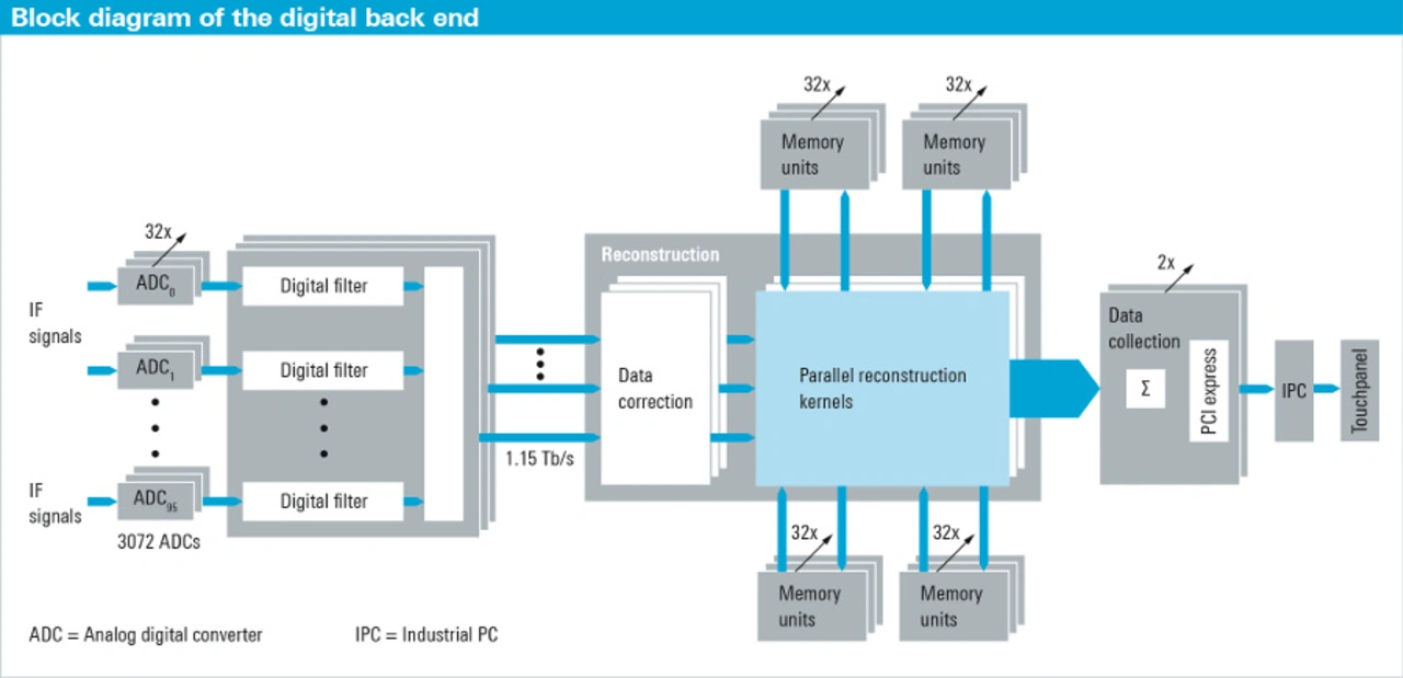 Entscheidende Voraussetzung für die Herstellung eines großen Körperscanners mit mehreren Bildgebungsclustern, die zusammen ein System mit über 12.000 Kanälen bilden, war ein hoher Integrationsgrad des HF-Frontends.