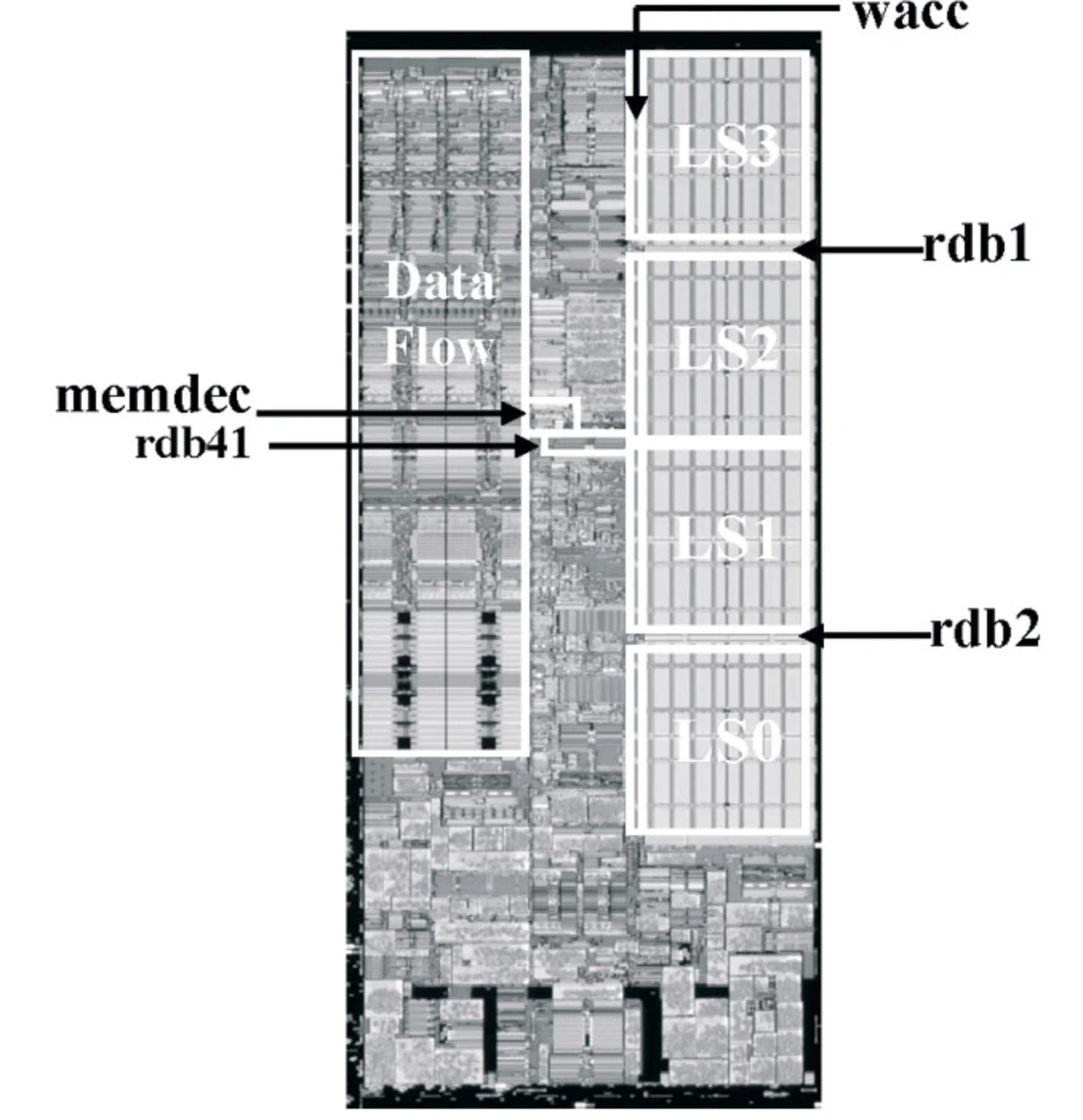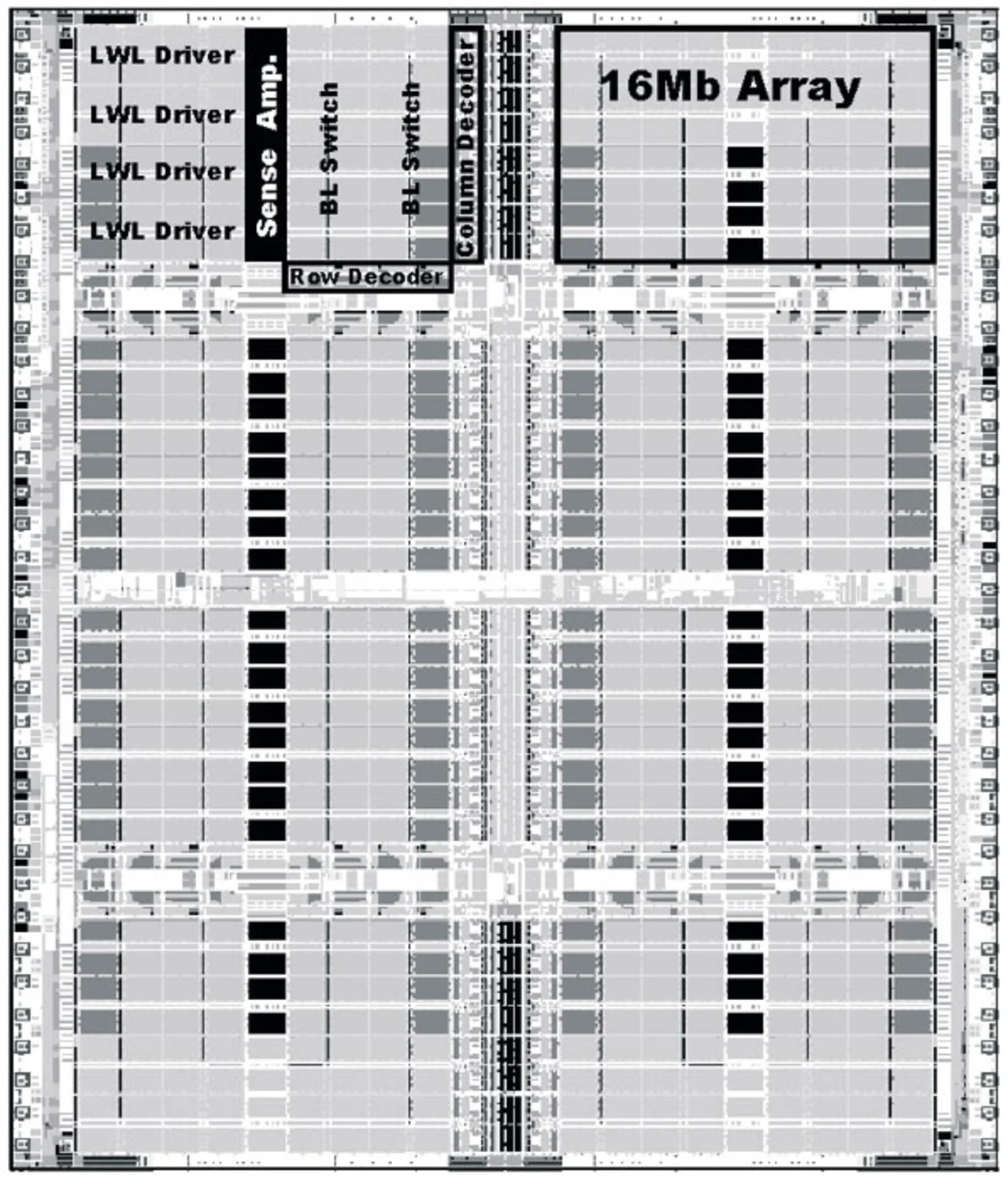 Einen mit einer Taktfrequenz von 4,8 GHz besonders schnellen SRAM-Cache präsentierte IBM (Bild 8). Der Cache mit 6-stufiger Pipeline ist Teil des Cell-Prozessors und wurde in einem 90-nm-SOI-Prozess realisiert [3].