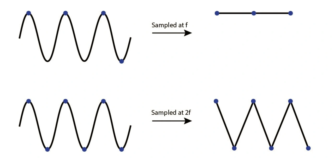 Die Abtastrate muss mindestens doppelt so hoch sein wie die höchste Frequenz des zu messenden Signals, um eine exakte Signalrekonstruktion zu gewährleisten. Dieser als Nyquist-Theorem bekannte Grundsatz stellt sicher, dass ein Signal ohne Detailverluste erfasst wird. Liegt die Abtastrate unterhalb dieses Schwellenwerts (in diesem Fall spricht man von Undersampling bzw. Unterabtastung), können Aliasing-Effekte auftreten. Bei diesem Phänomen werden hochfrequente Komponenten fälschlicherweise als niedrigere Frequenzen dargestellt, was zu verzerrten und unzuverlässigen Daten führt.
