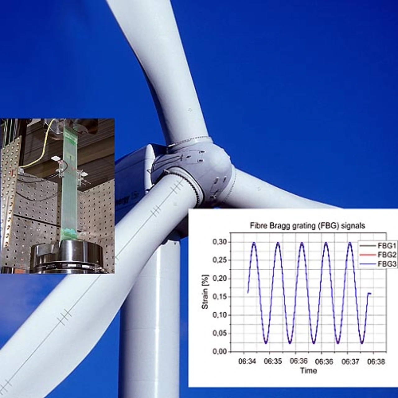 Besonders die Multiplexing-Fähigkeit von faseroptischen Sensoren ist hier von Bedeutung, da mit einem Kabel die Messwerte von bis zu 30 FBGs erfasst werden können. Somit lässt sich die Beanspruchung der Turbinenblätter entweder periodisch oder kontinuierlich messen und Ermüdungsschäden kann frühzeitig vorgebeugt werden[10].